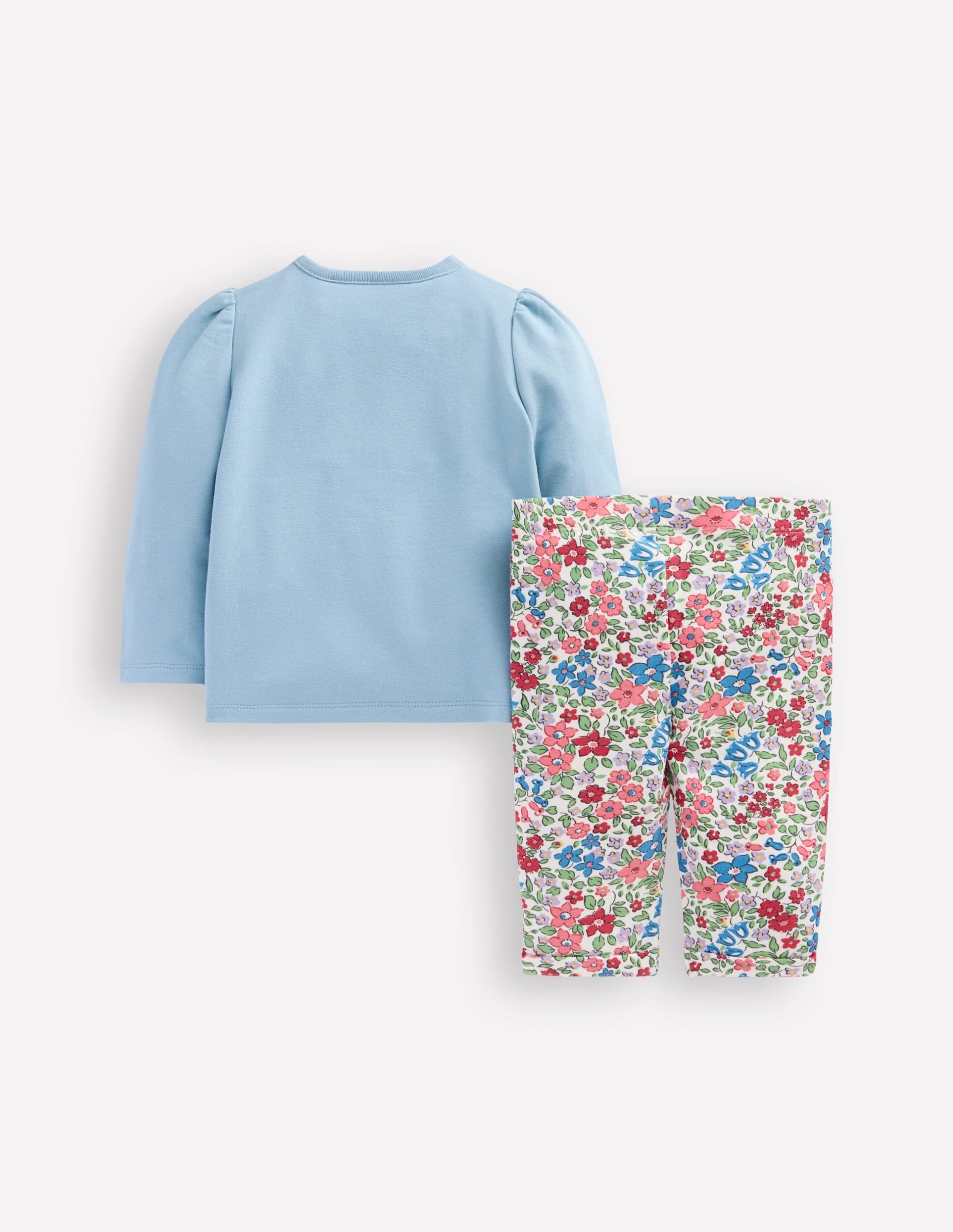 A soft cotton top with long sleeves and frills topped off with a fun appliqu?? motif. Plus printed bottoms with a stretchy waist. What do we have? This adorable jersey play set.