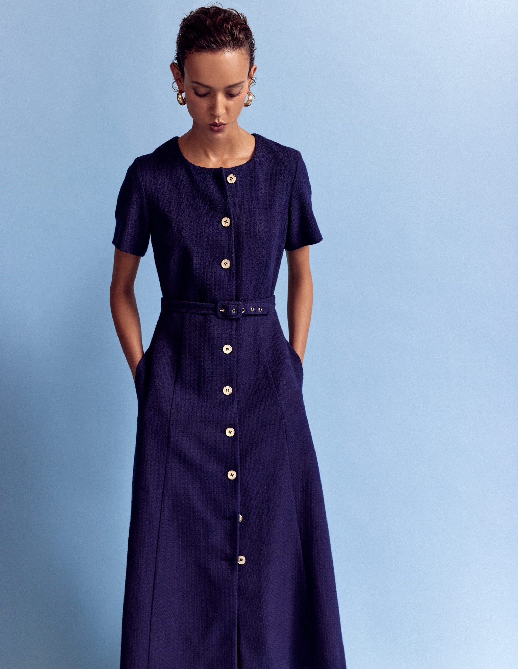 The Charlotte midi dress makes effortless style look easy. But really it’s the contrast buttons. clever darts and fabric belt working overtime on your behalf.