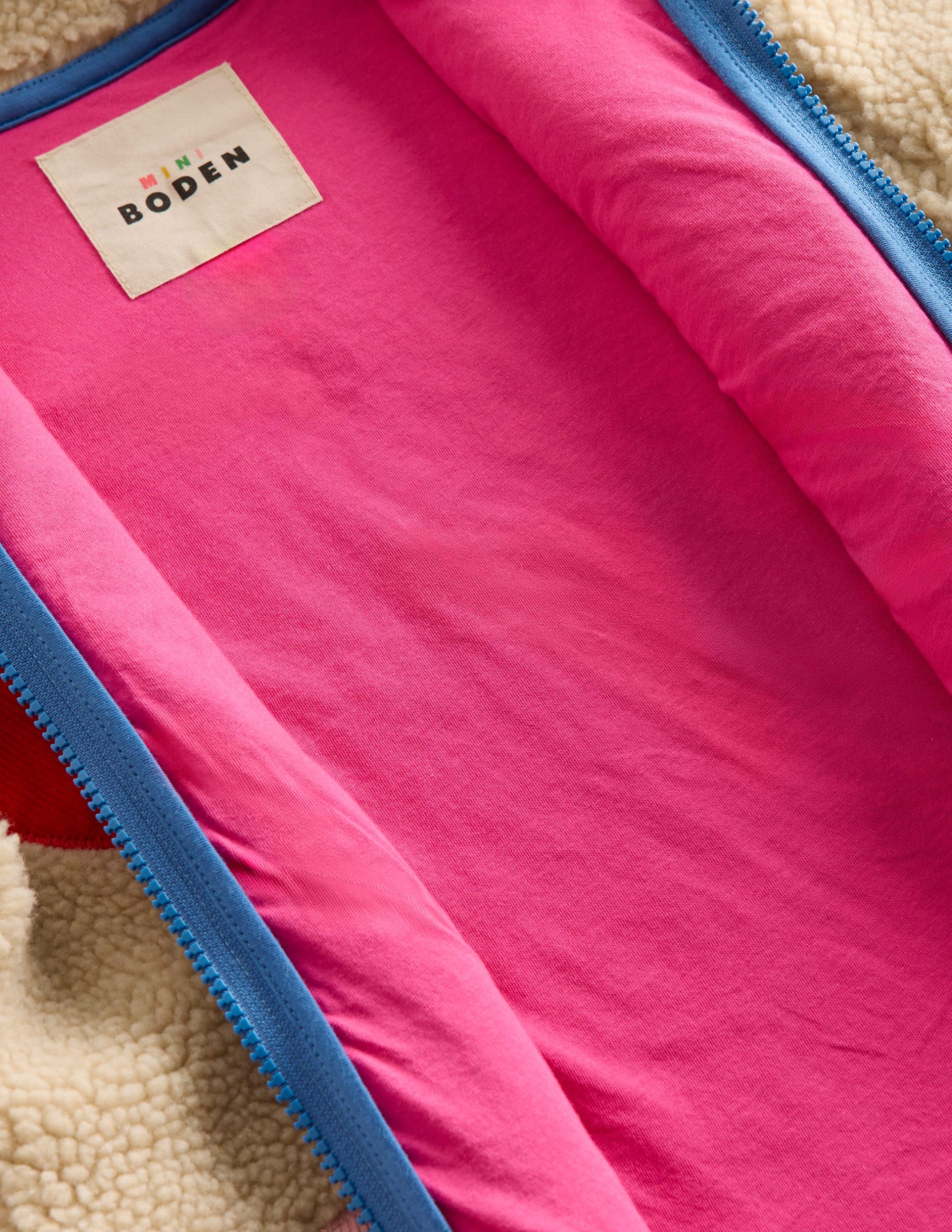 These zip-up jackets are like wearing a hug with their cosy teddy-bear style fabric and chunky collar. Not only is the borg super-duper snug. it’s also bright and colourful. There’s a dipped hem at the back and pockets. too.