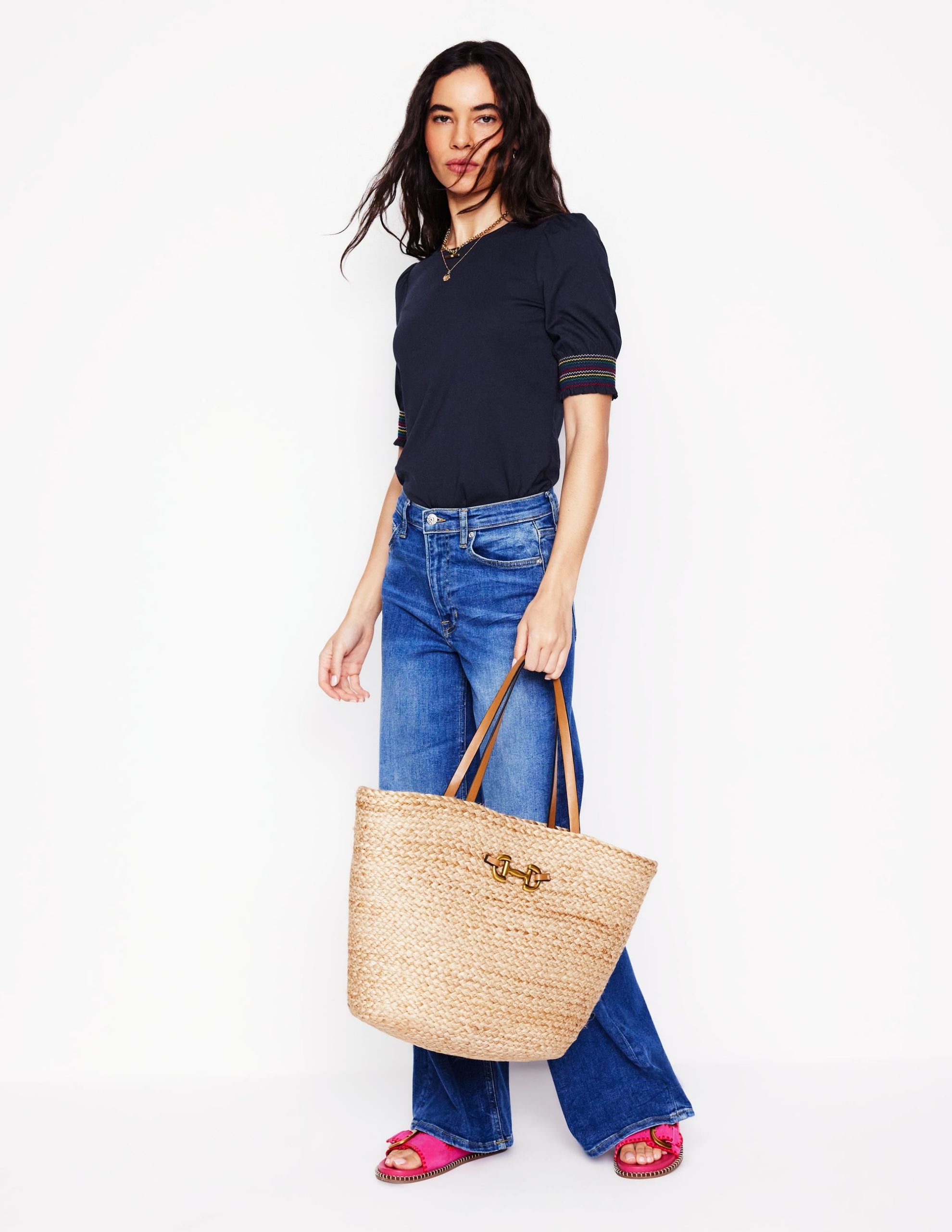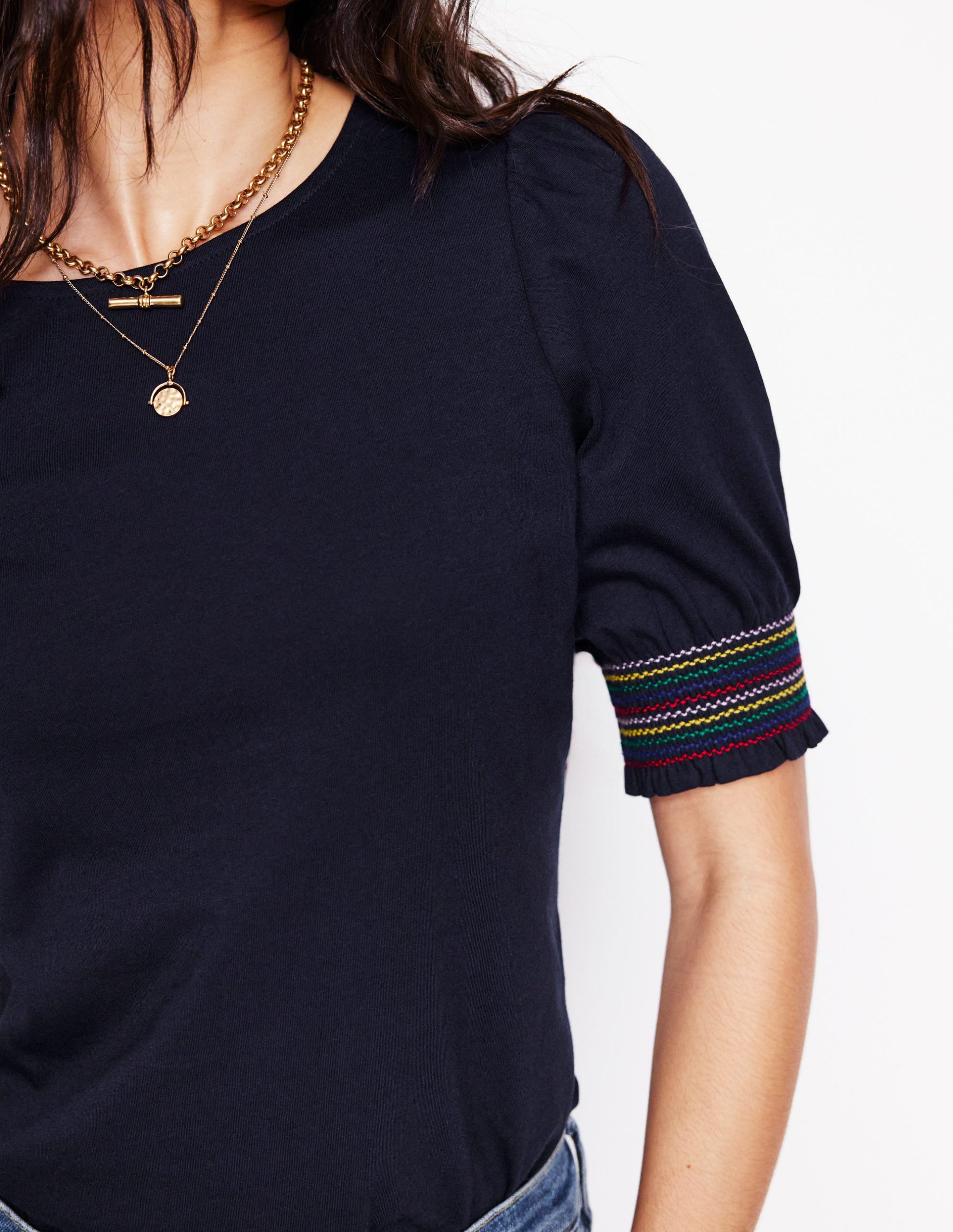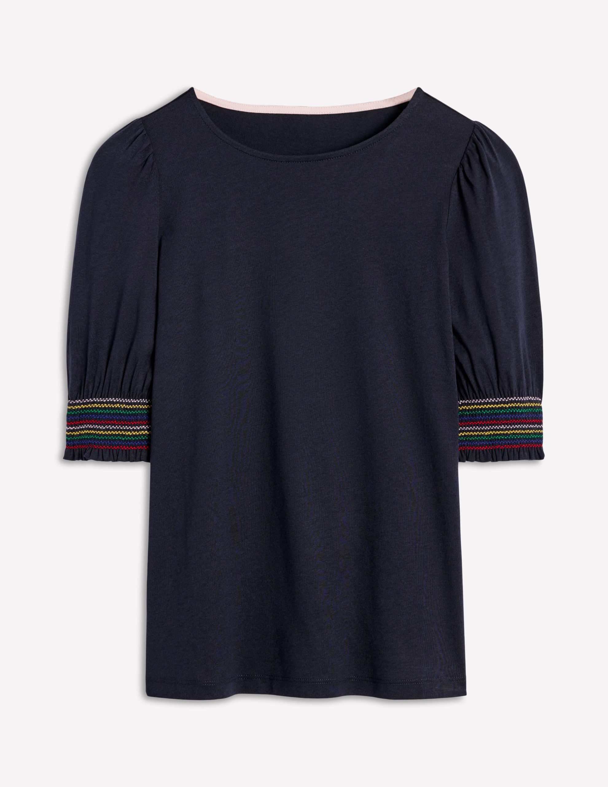 Update your usual jeans and a tee combo with our latest take on the short-sleeve top ??the puff sleeves with smocked cuffs make it ideal for work or play.