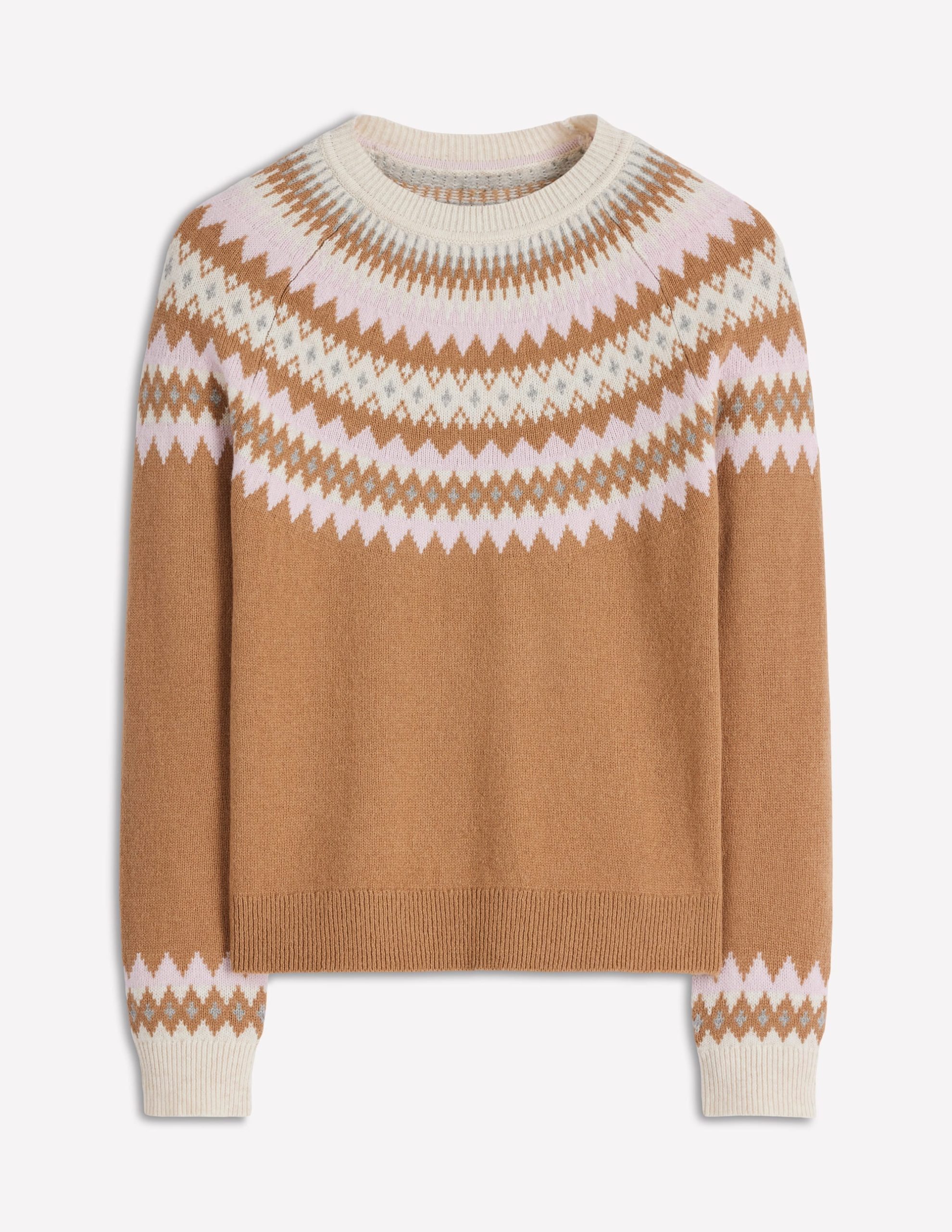 Edie Fair Isle Sweater-Camel Melange Fair Isle