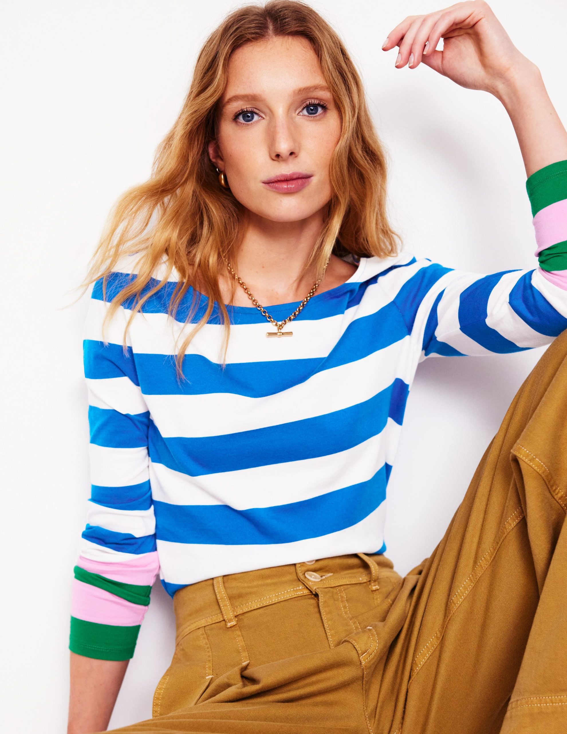 Be the first to review “Ella Long Sleeve Breton-Gallery Blue. Emerald Cuff”