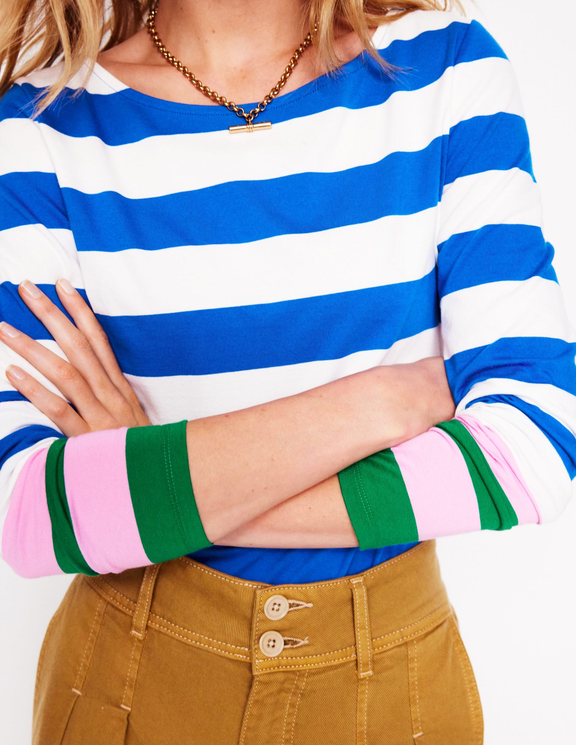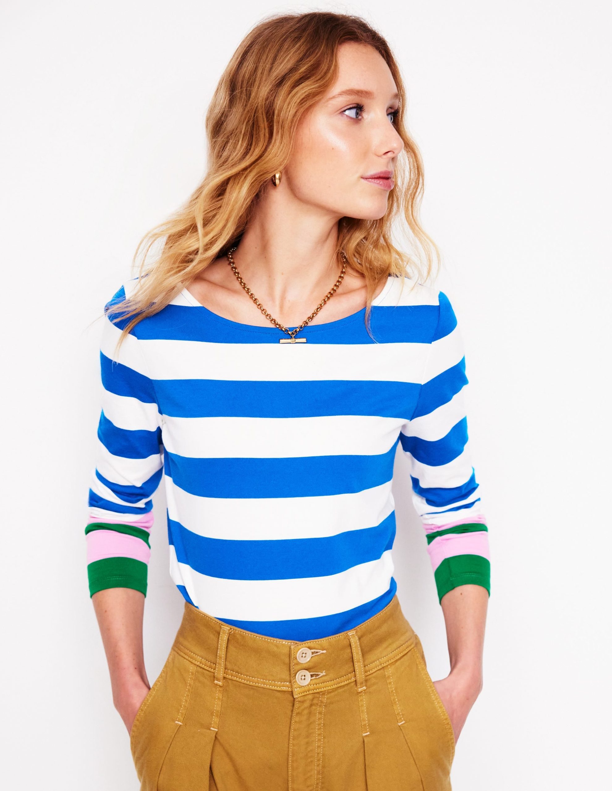 Ella Long Sleeve Breton-Gallery Blue. Emerald Cuff
