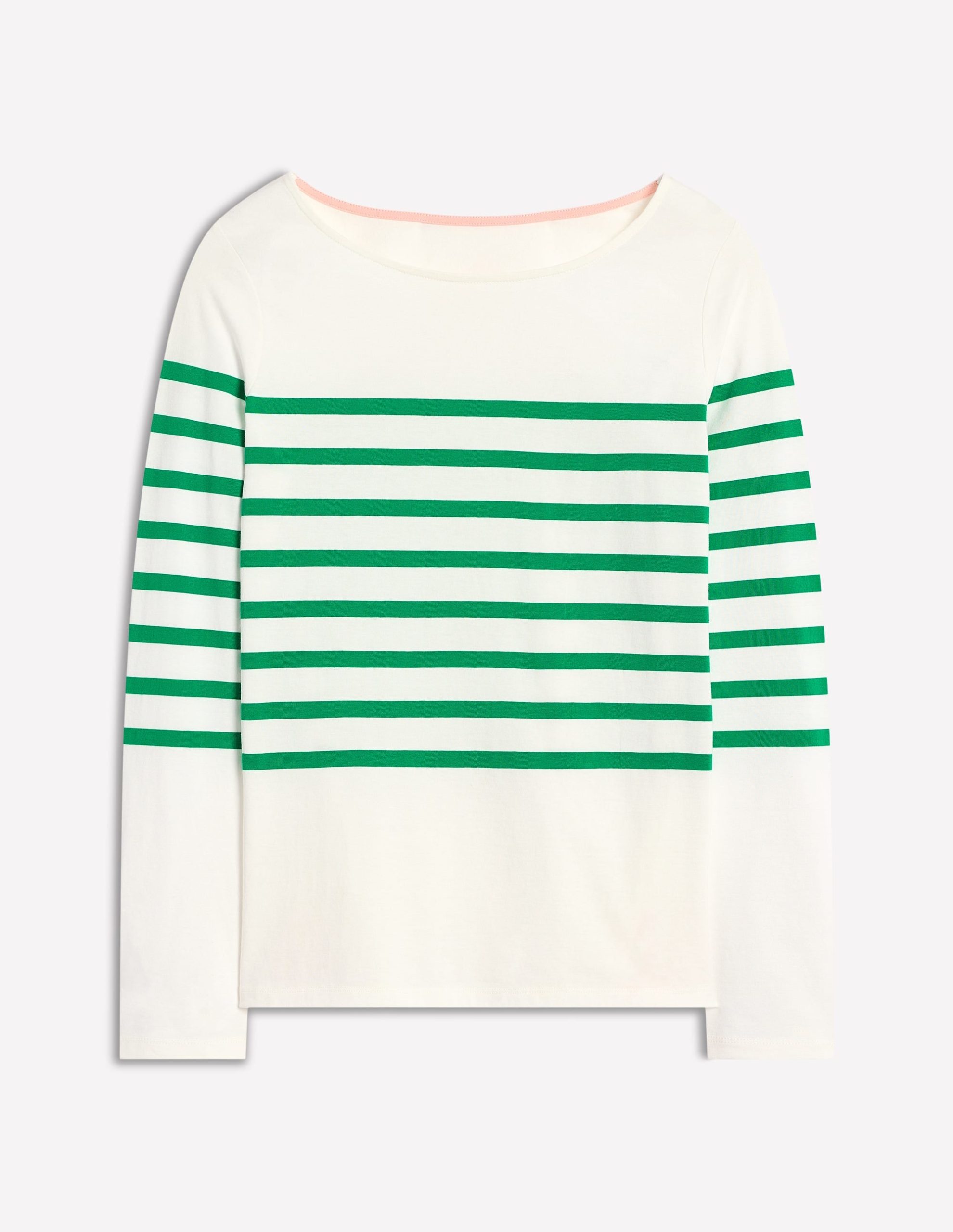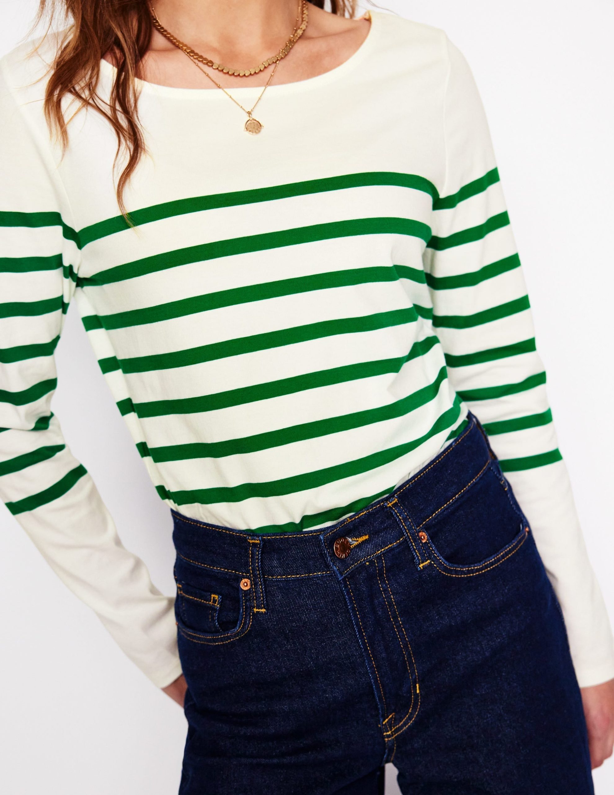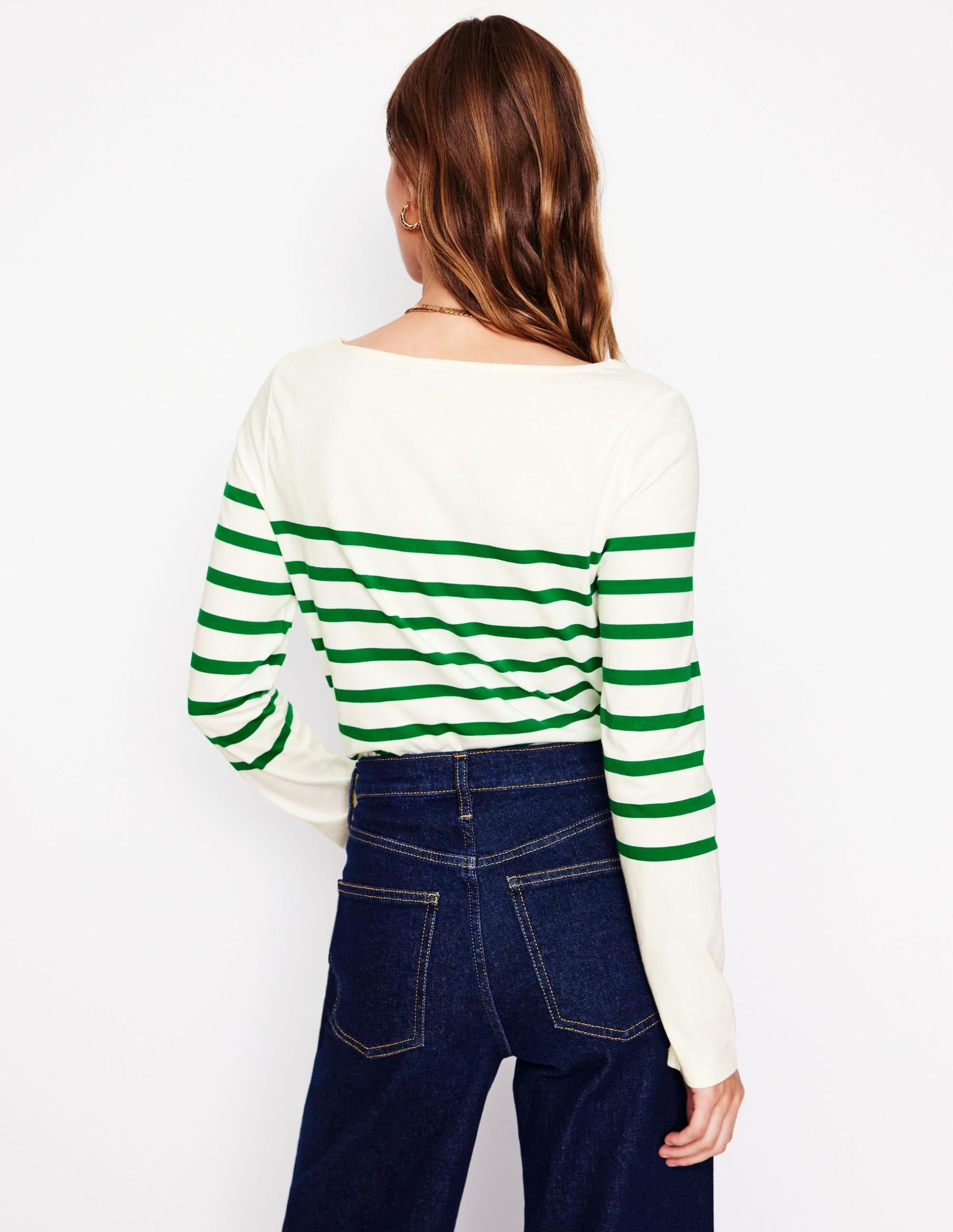 Ella Long Sleeve Breton-Ivory. Rich Emerald