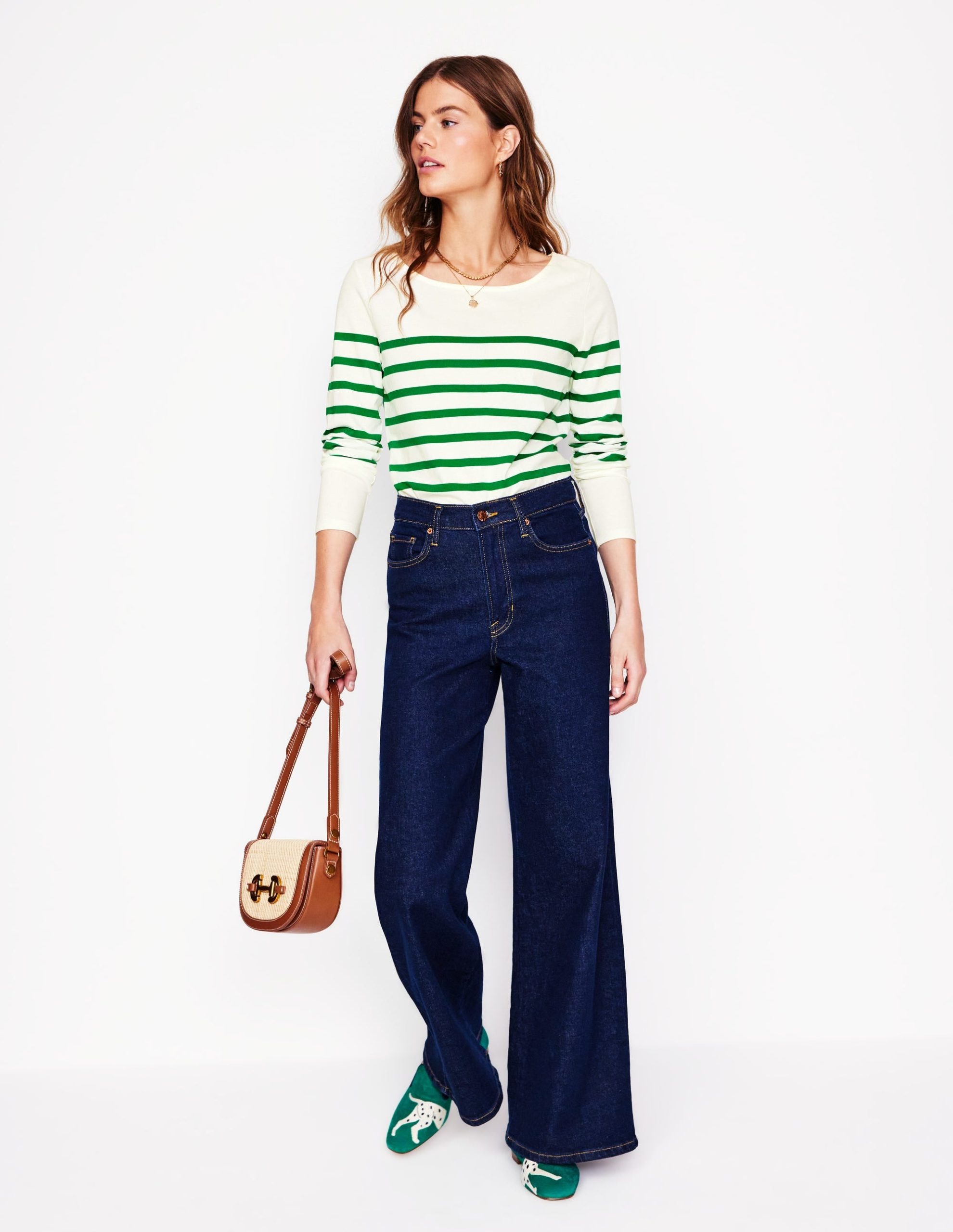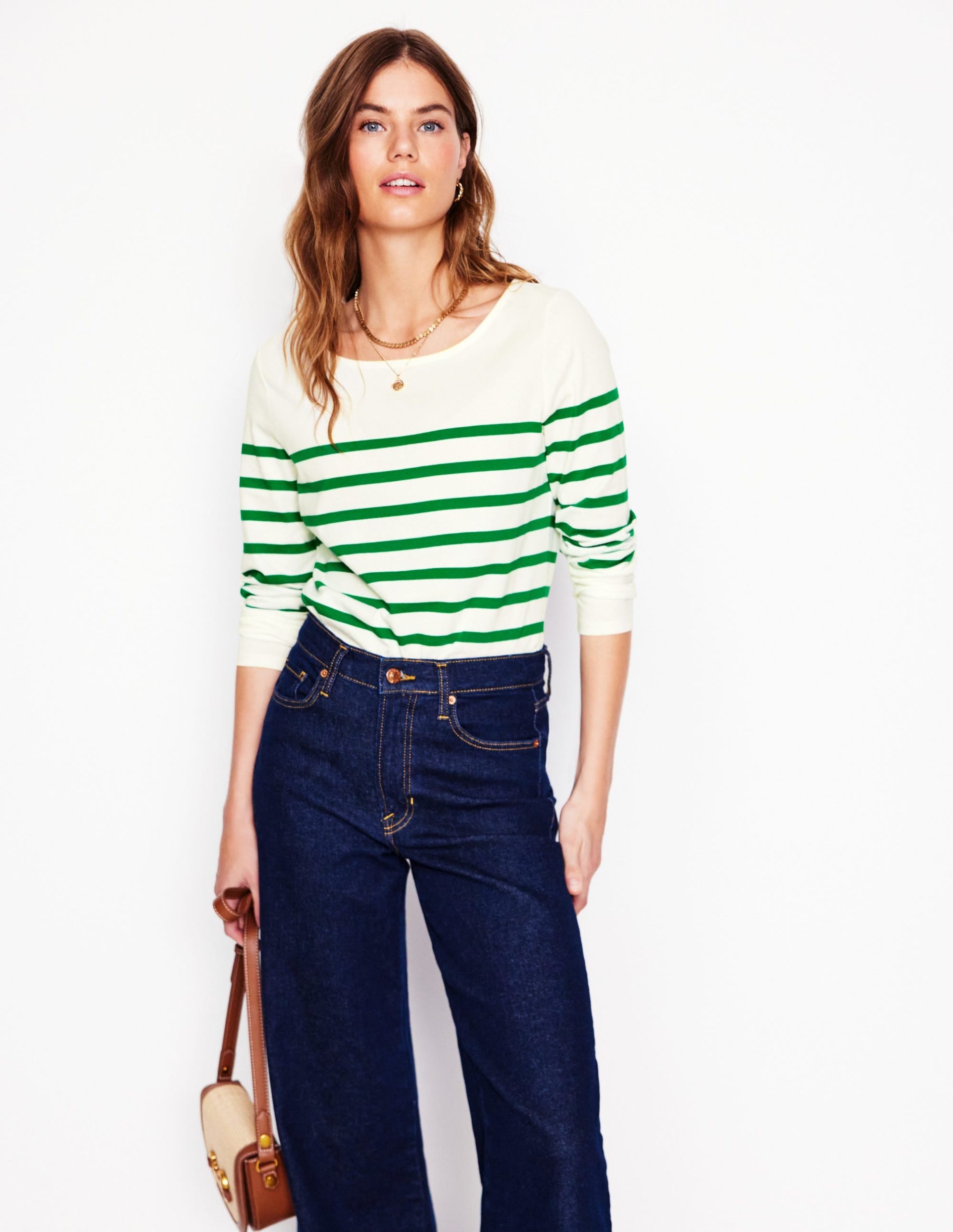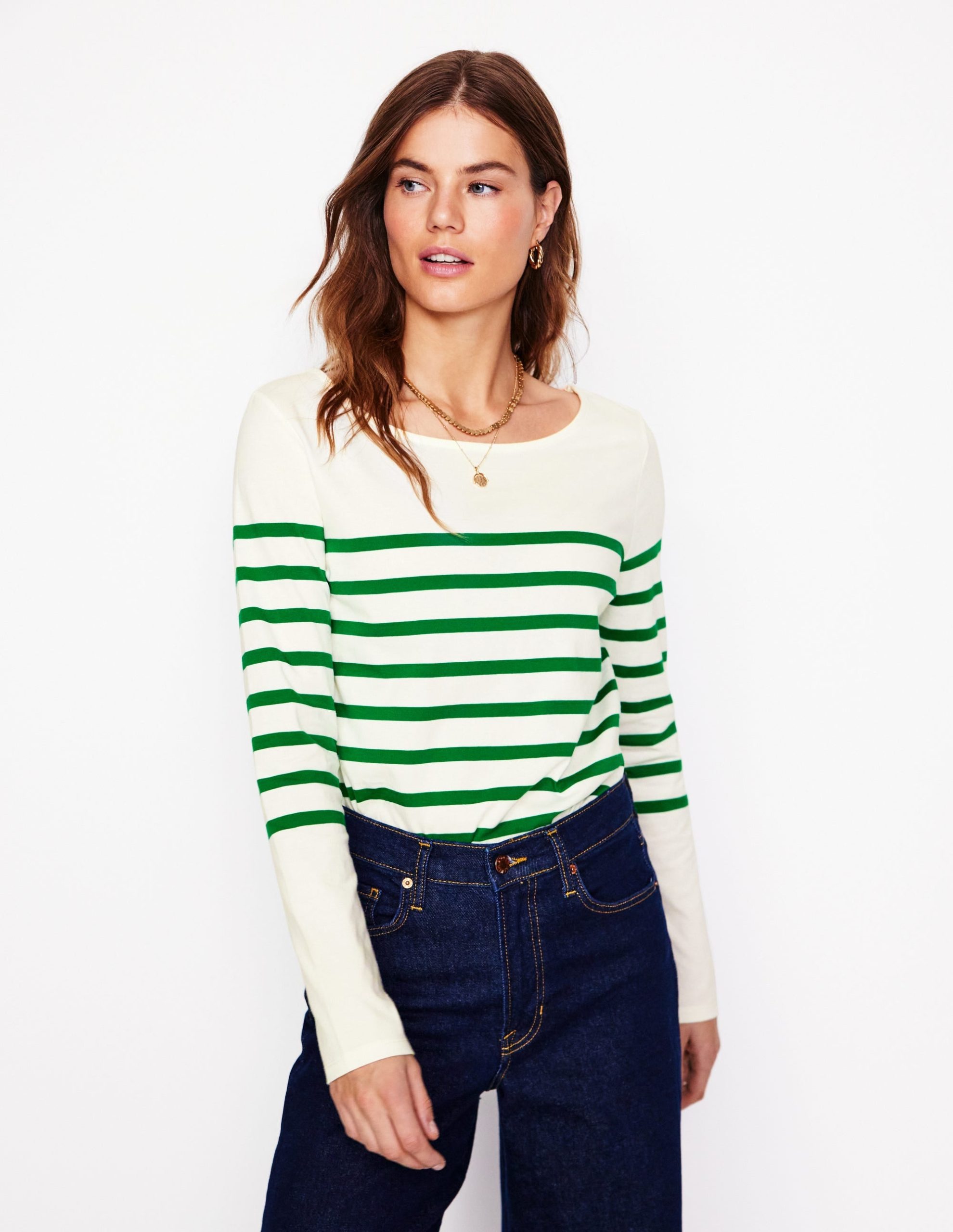 Ella Long Sleeve Breton-Ivory. Rich Emerald