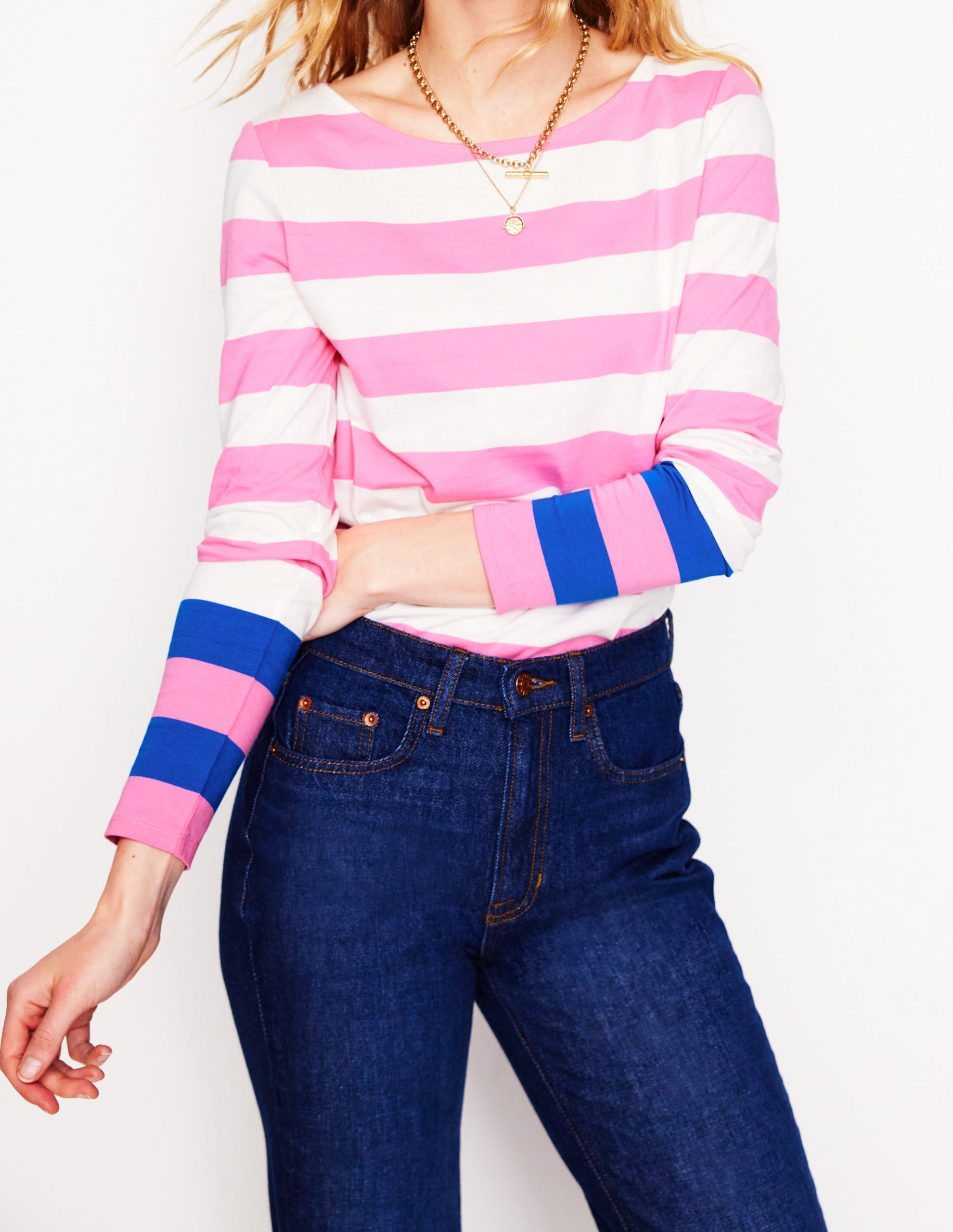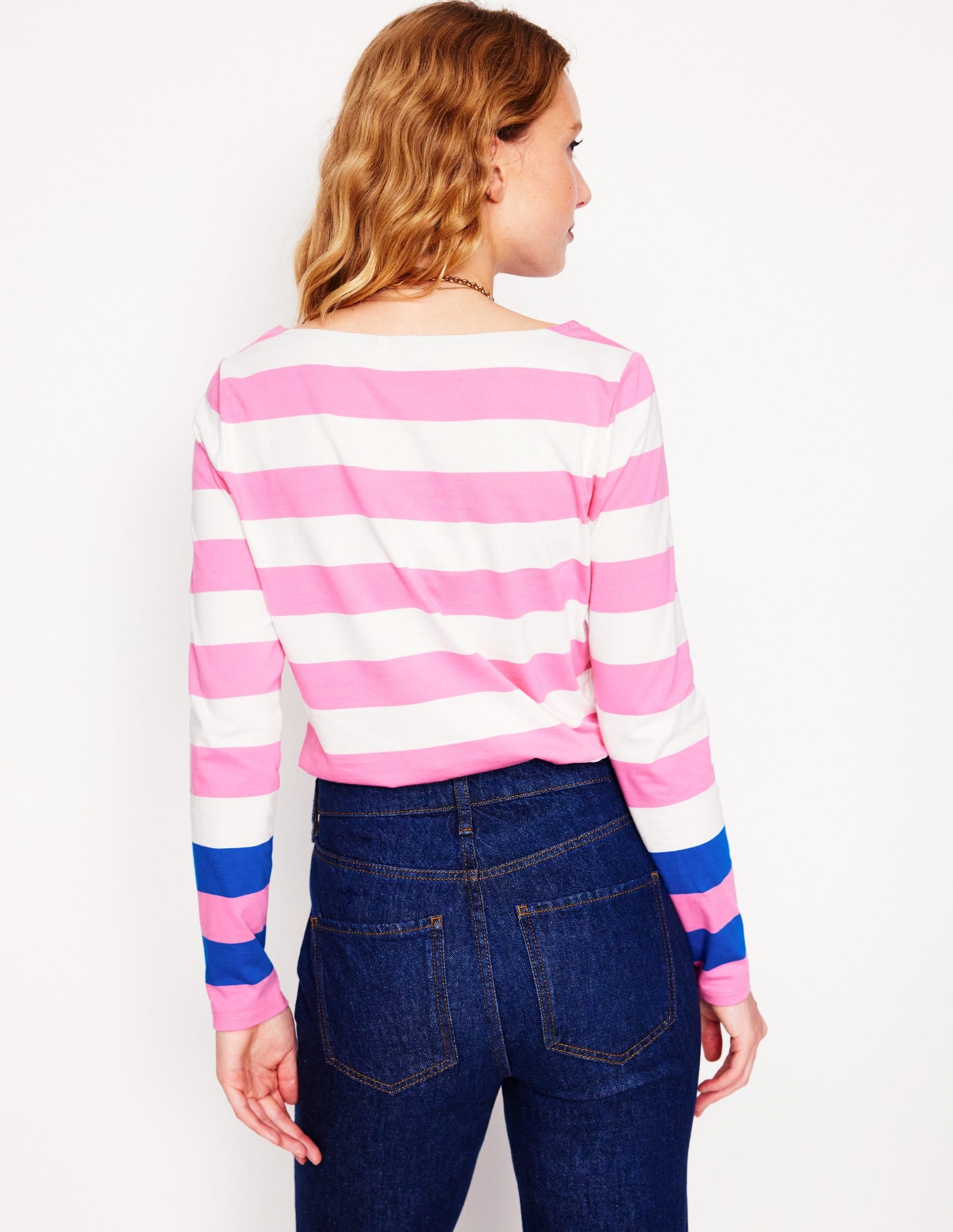 Ella Long Sleeve Breton-Pink Rose. Gallery Blue Cuff