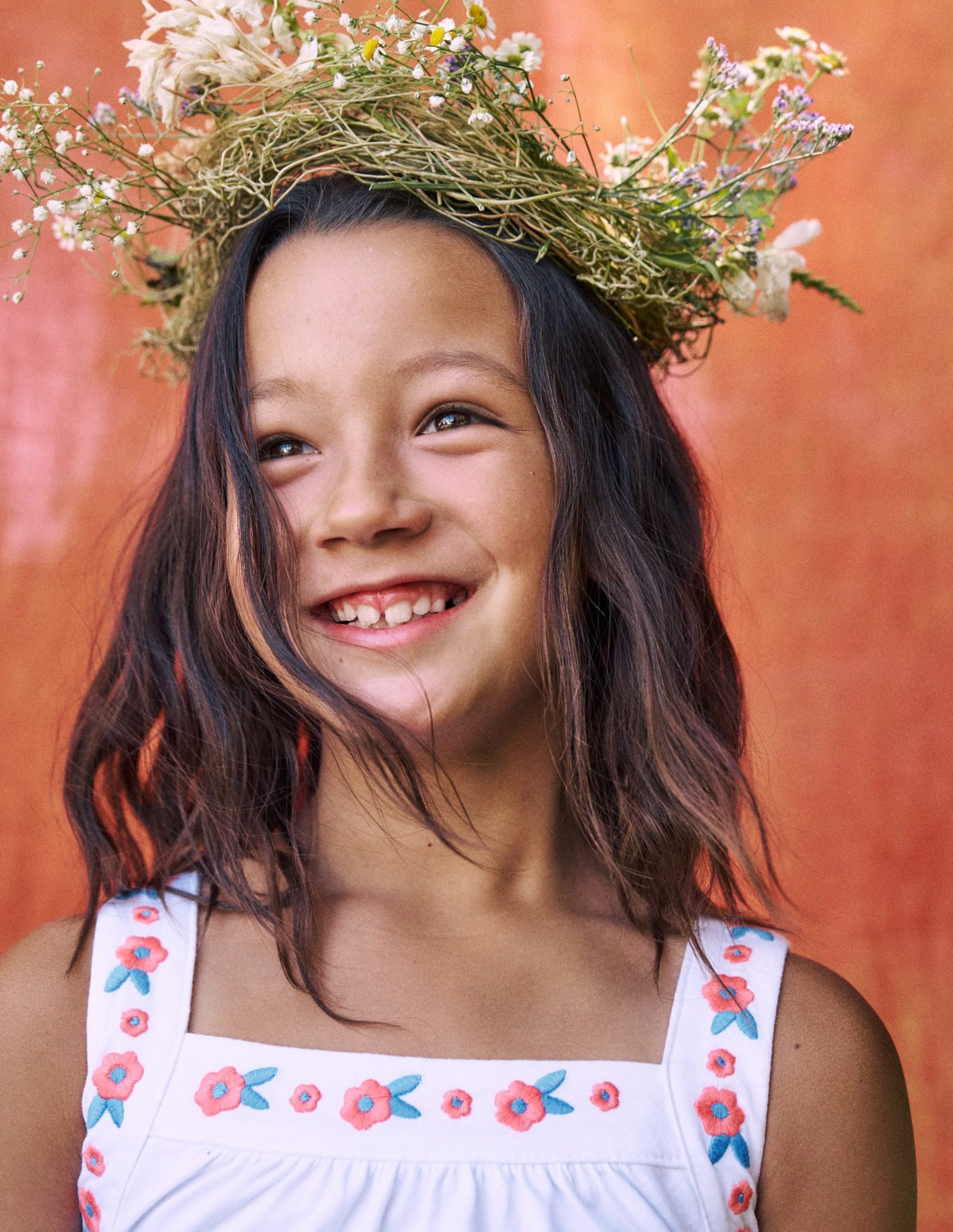 We’ve worked our embroidery magic into the front and back straps of this adorable 100% cotton top. It sits on delicate skin as light as a cloud on summer days.