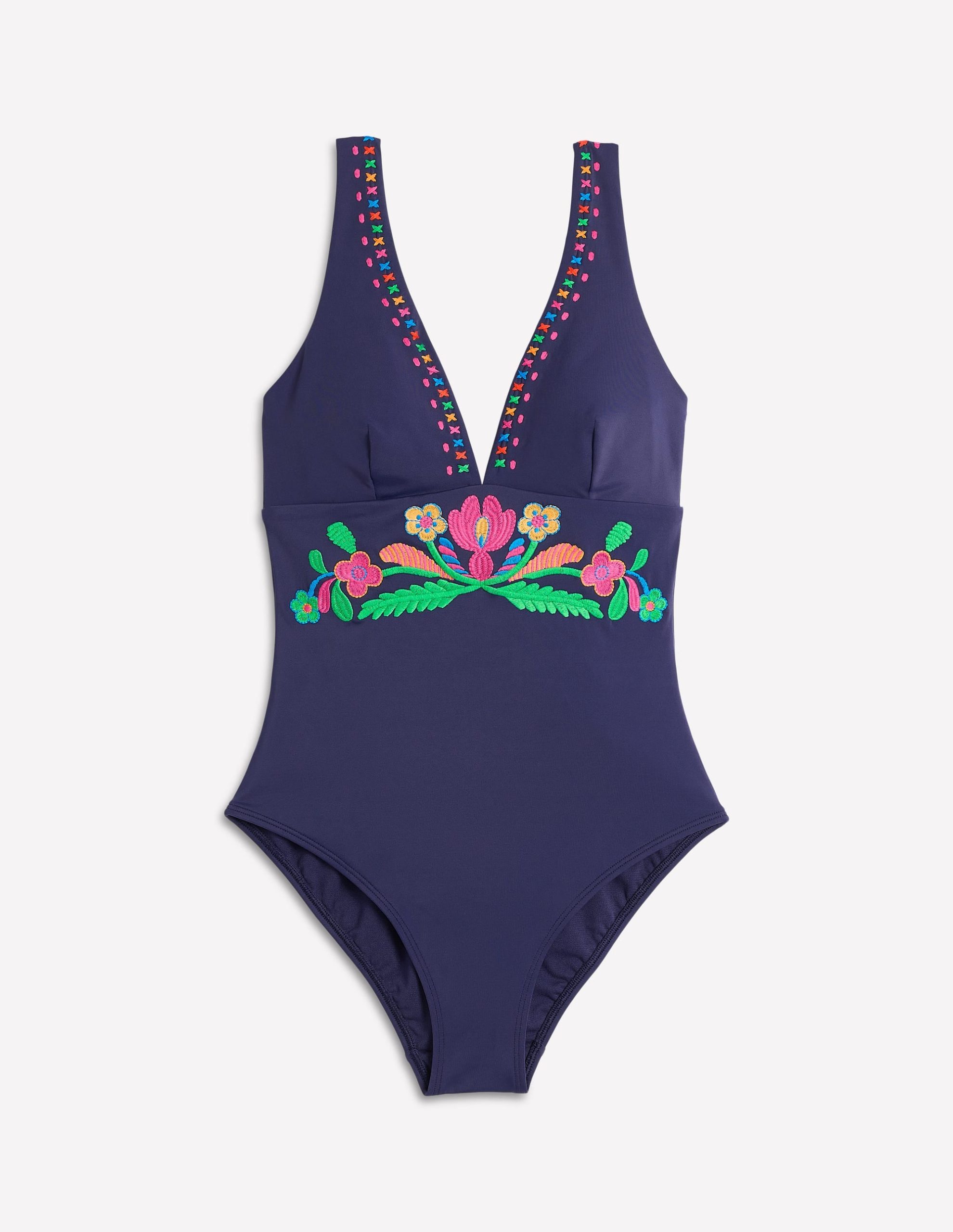 The intricate embroidery on this swimsuit makes it perfect for lounging by the pool. cocktail in hand. The wide supportive straps mean it’s also ideal for getting stuck into building sandcastles with little ones.