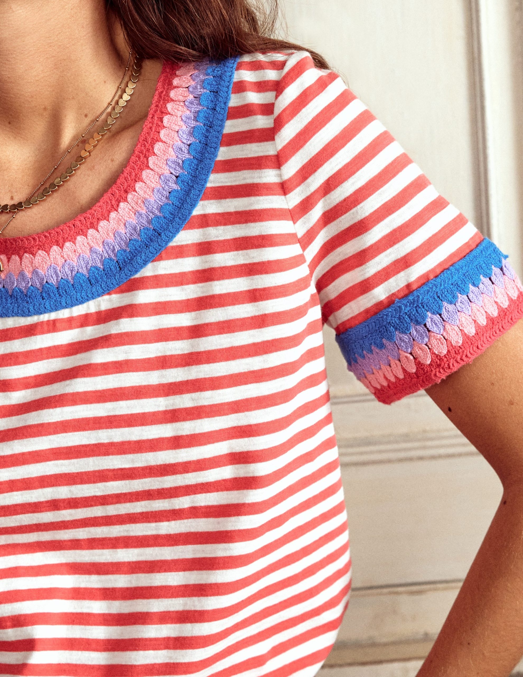 A T-shirt with a twist. We love the crochet detail on the neck and cuffs and know you will too.