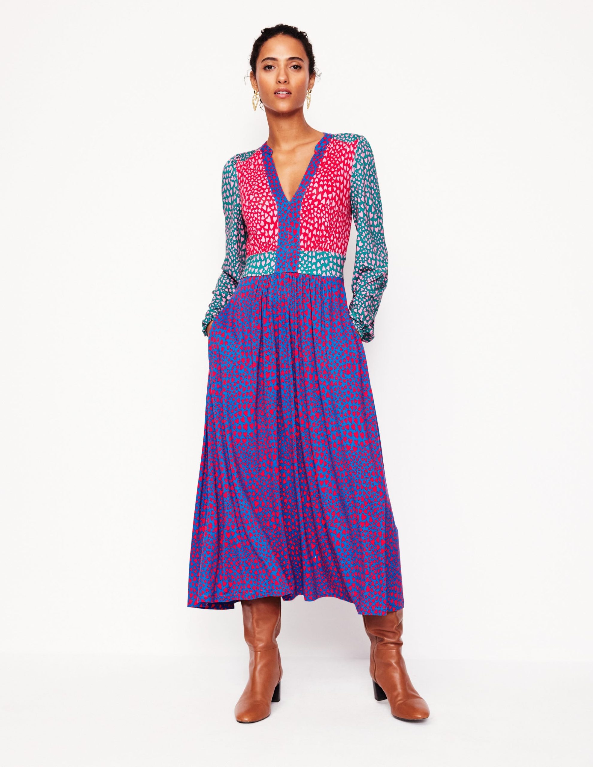 Lily Long Sleeve Midi Dress-Multi. Heart Cluster