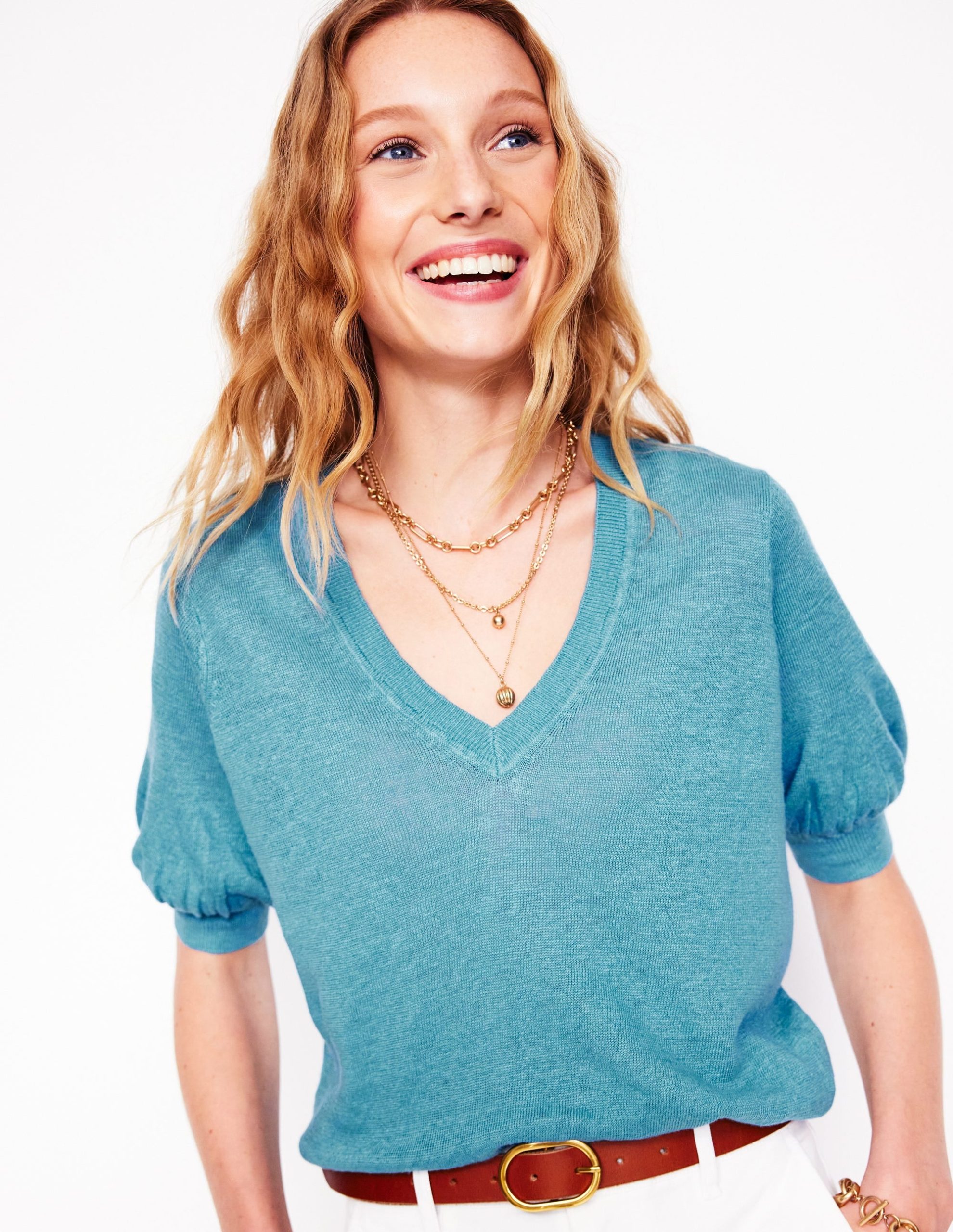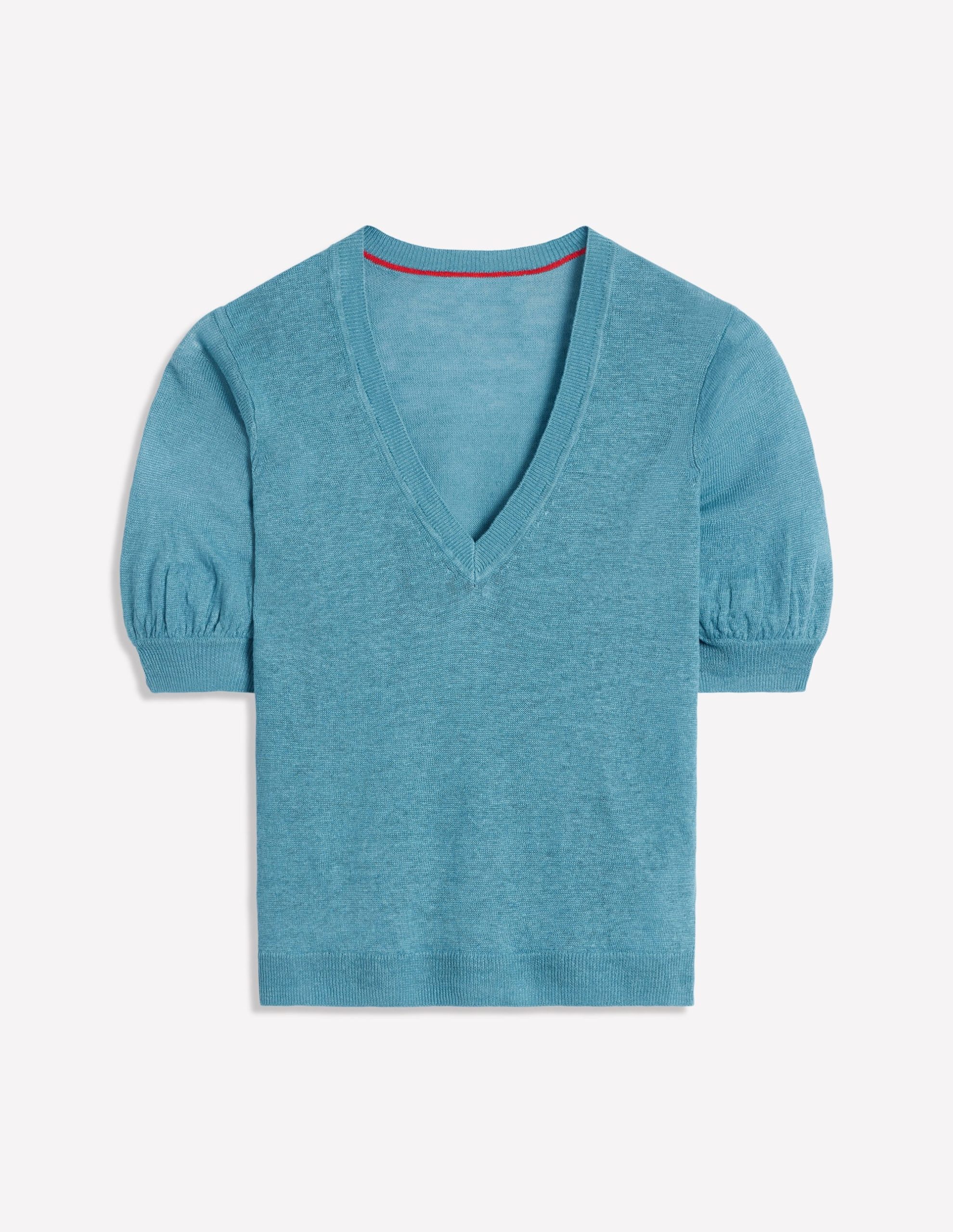 Liv V-Neck Linen T-Shirt-Duck Egg Blue