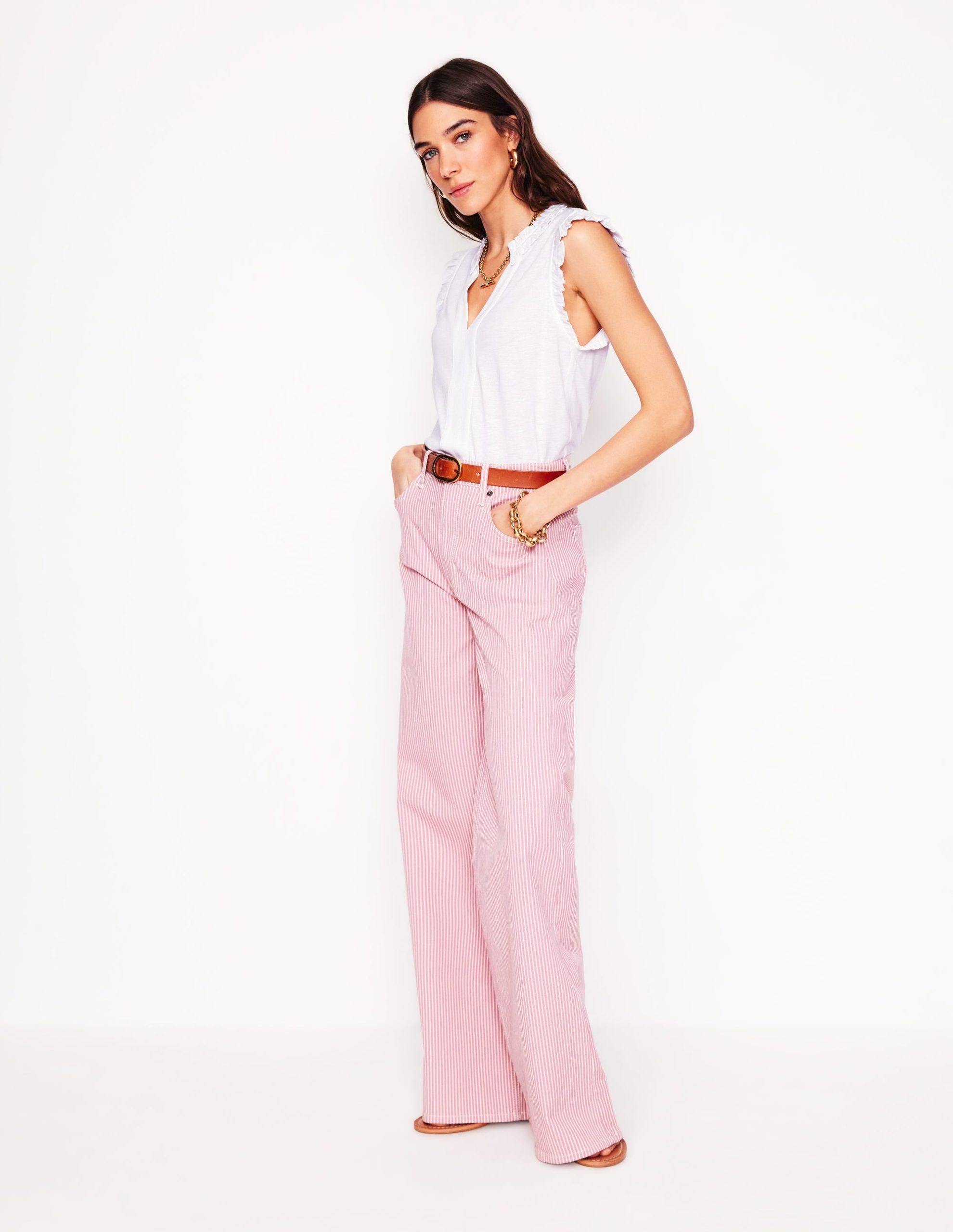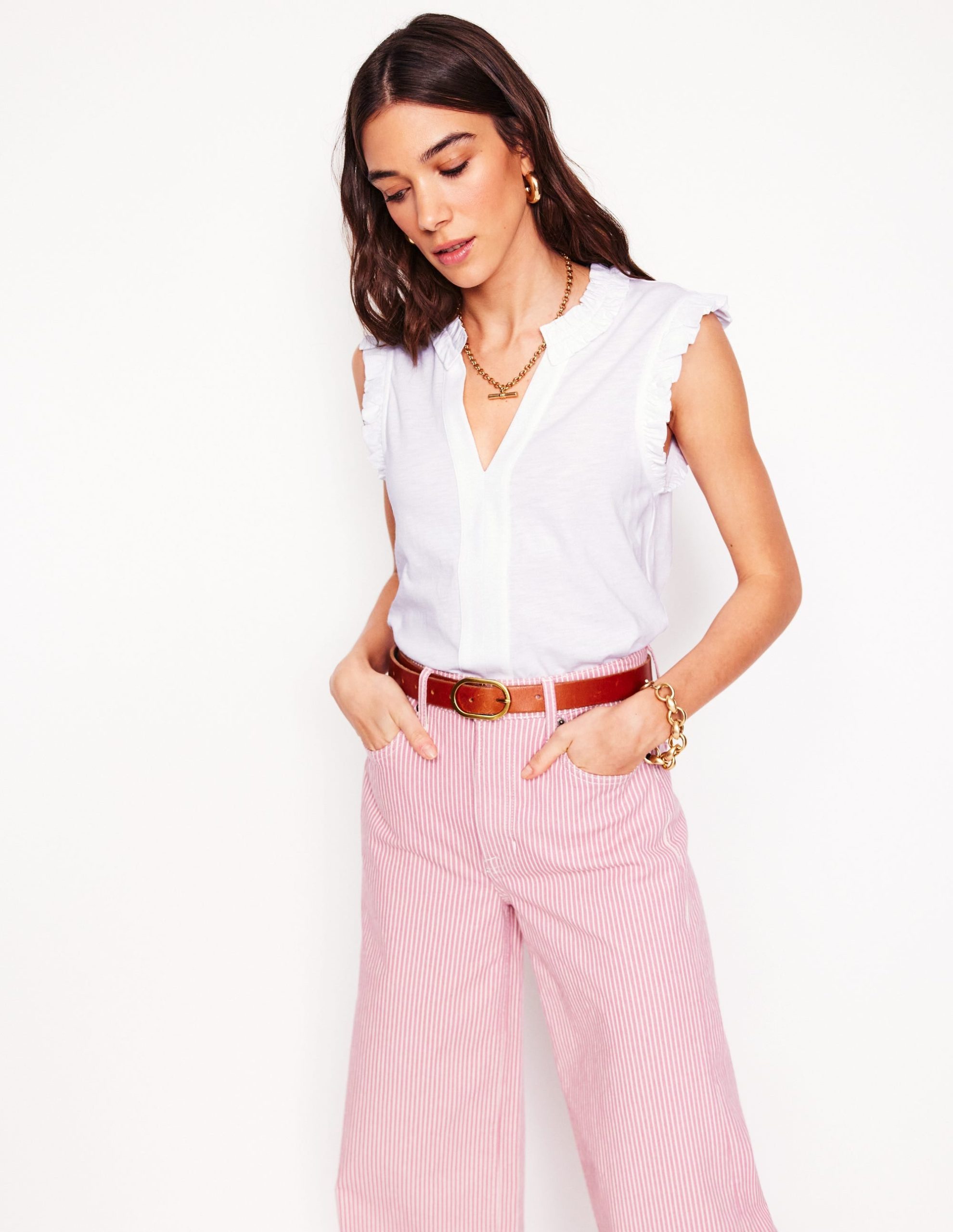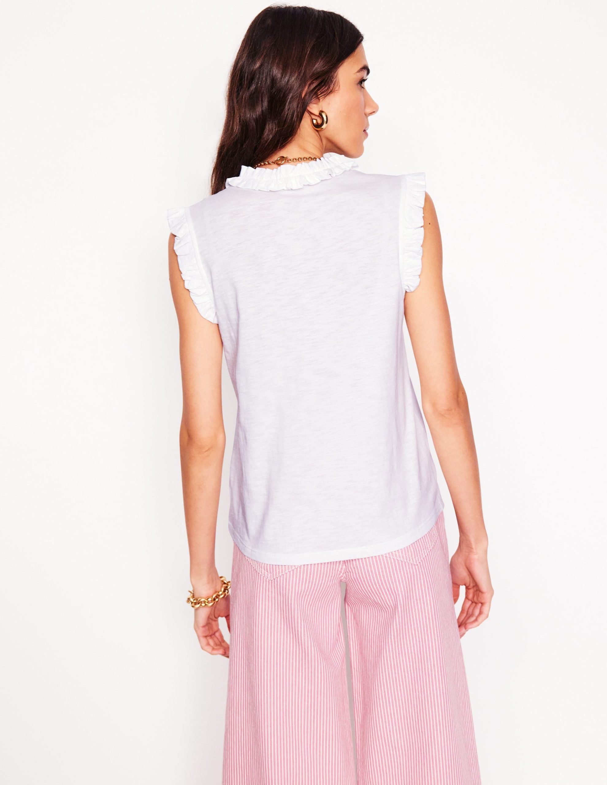Ah. summer. It’s time to get out the sleeveless tops and enjoy some sunshine. We’ve crafted Lola from a cotton blend and given it a comfortably cool flowy shape with frilled shoulders to act as cap sleeves.
