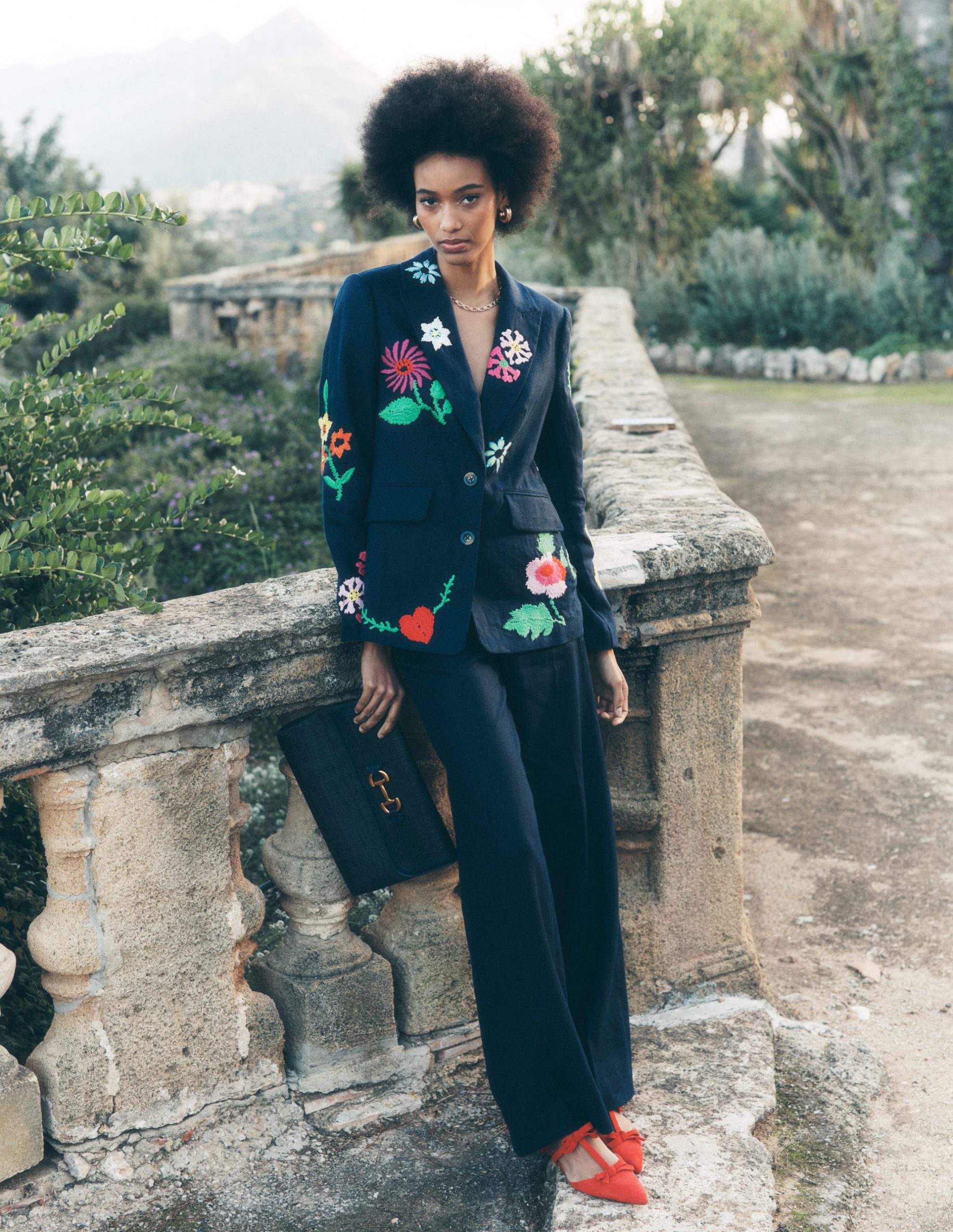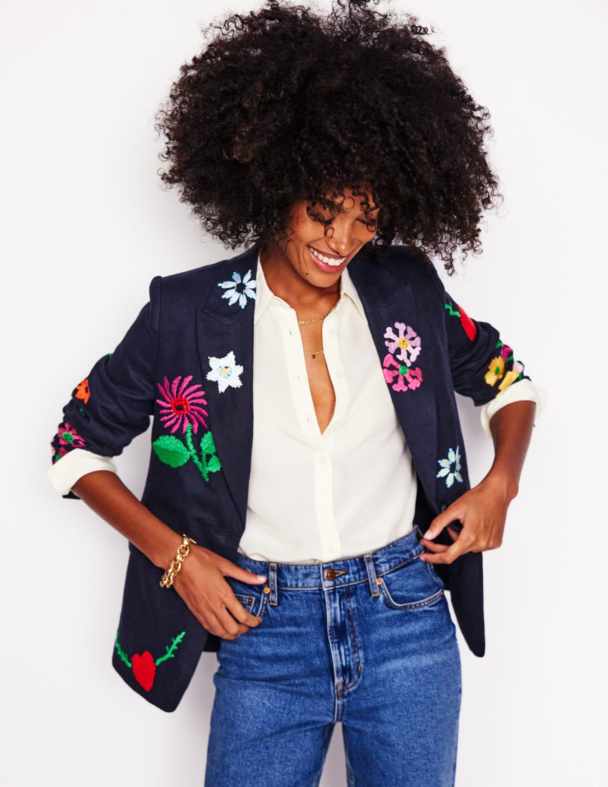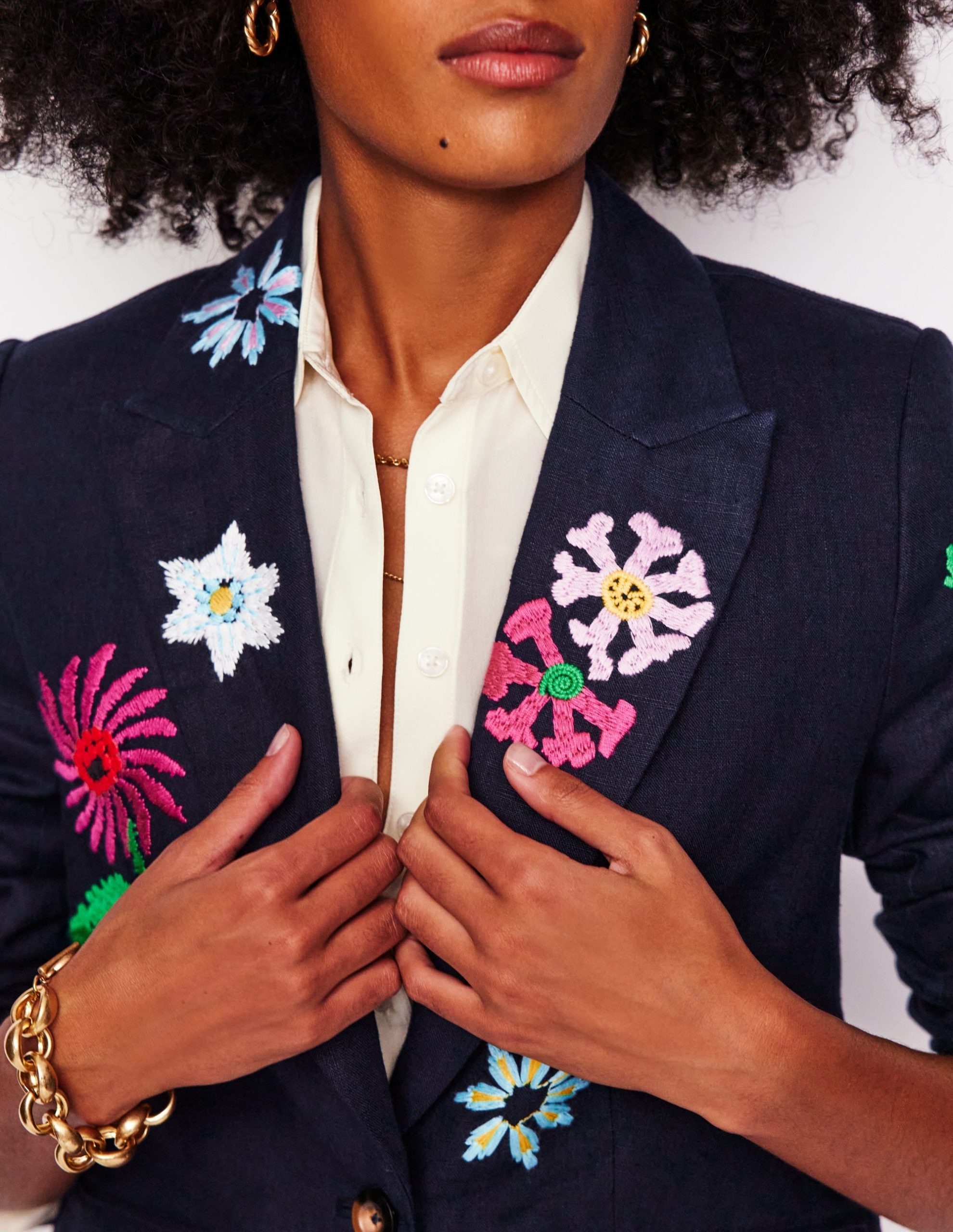 Marylebone Interest Blazer-Navy Embroidery