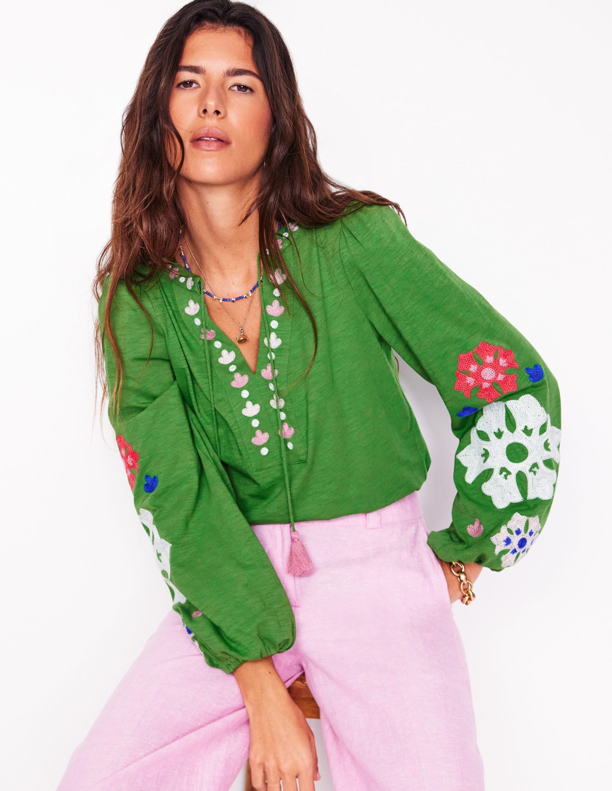 Making all our boho dreams reality. our floaty Nia top has embroidered detail and tassels.