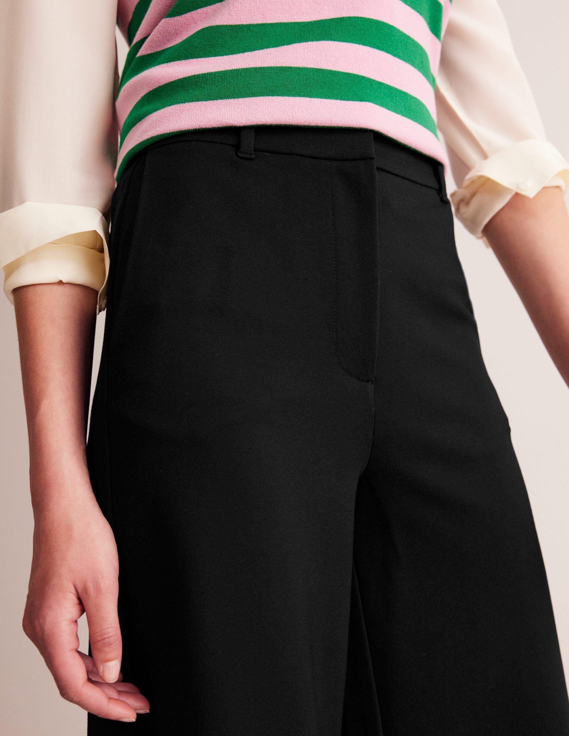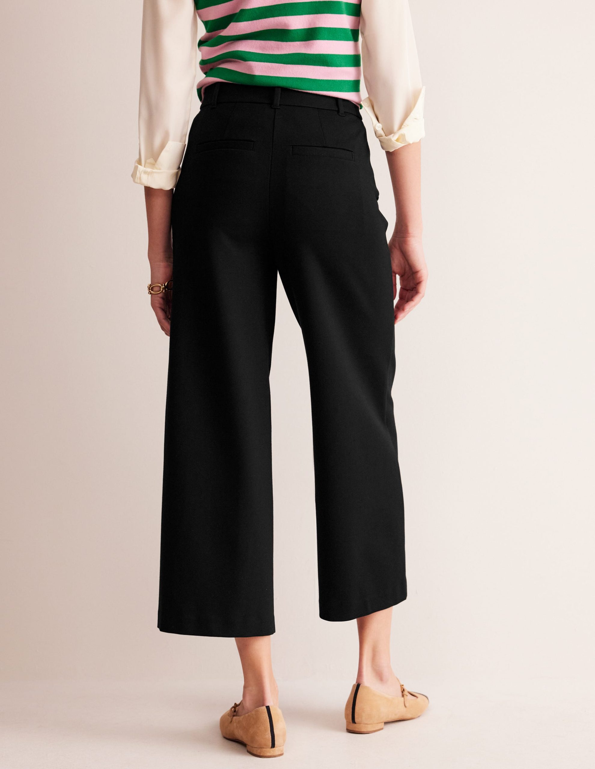 Cut from ponte-jersey. these mid-rise. wide-leg trousers are both smart and comfortable.The cropped length works equally as well with loafers and heels.