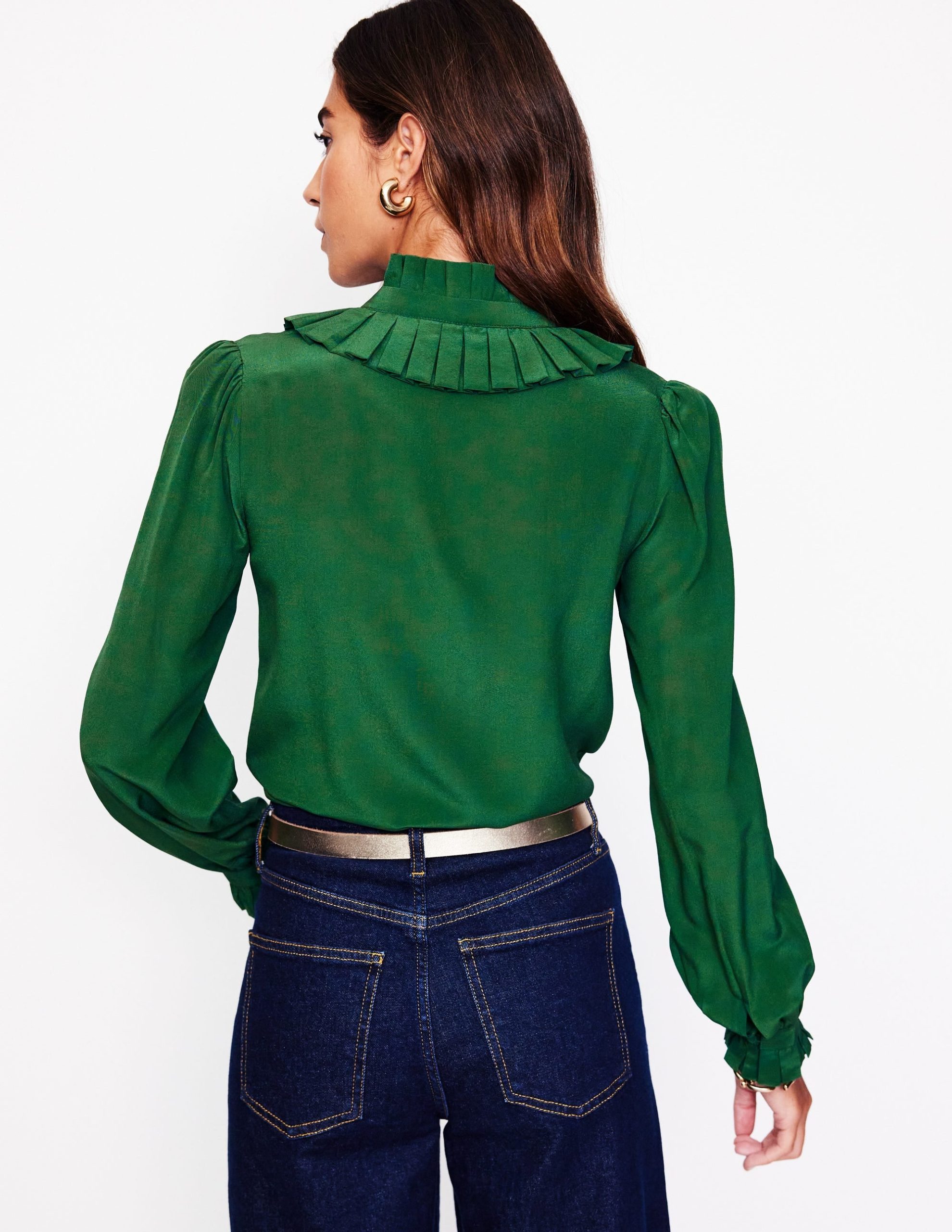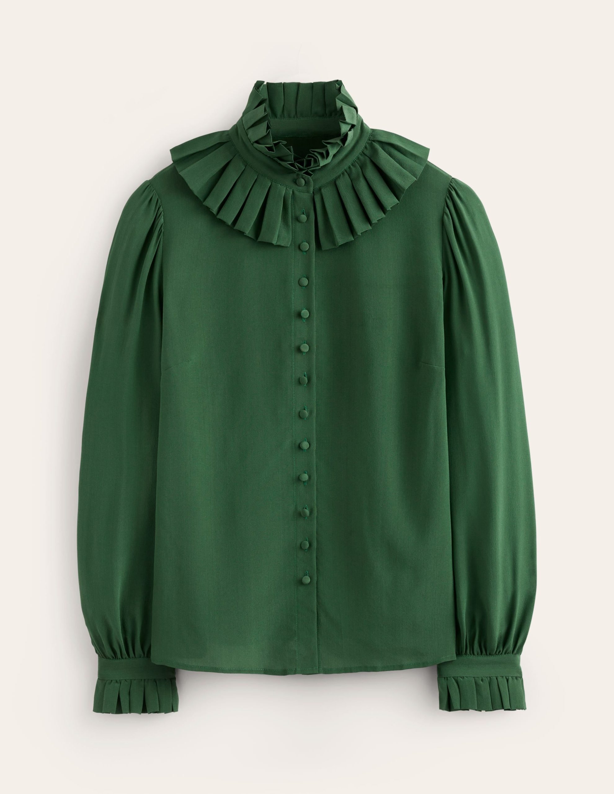Ruffle Collar Silk Blouse-Pine