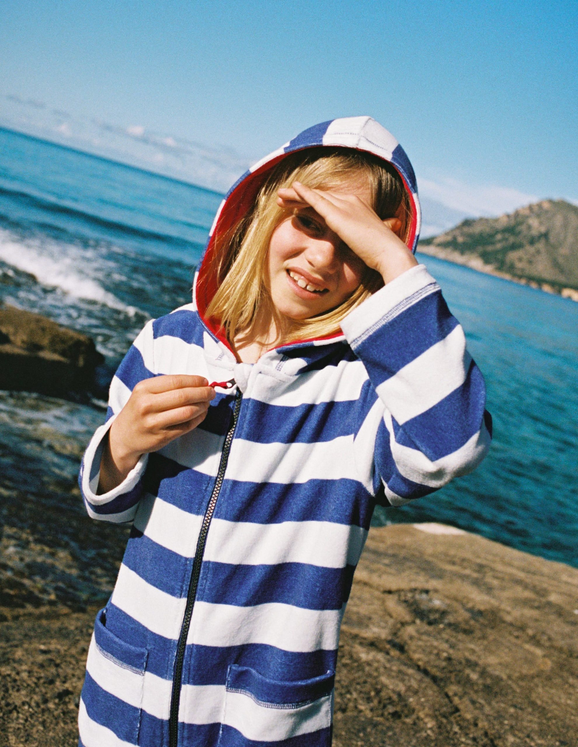 Wrap up Minis after their swim session in our colourful towelling robe. The super-soft cotton and cosy hood keeps them warm and dry ?C until they want to dive back in??