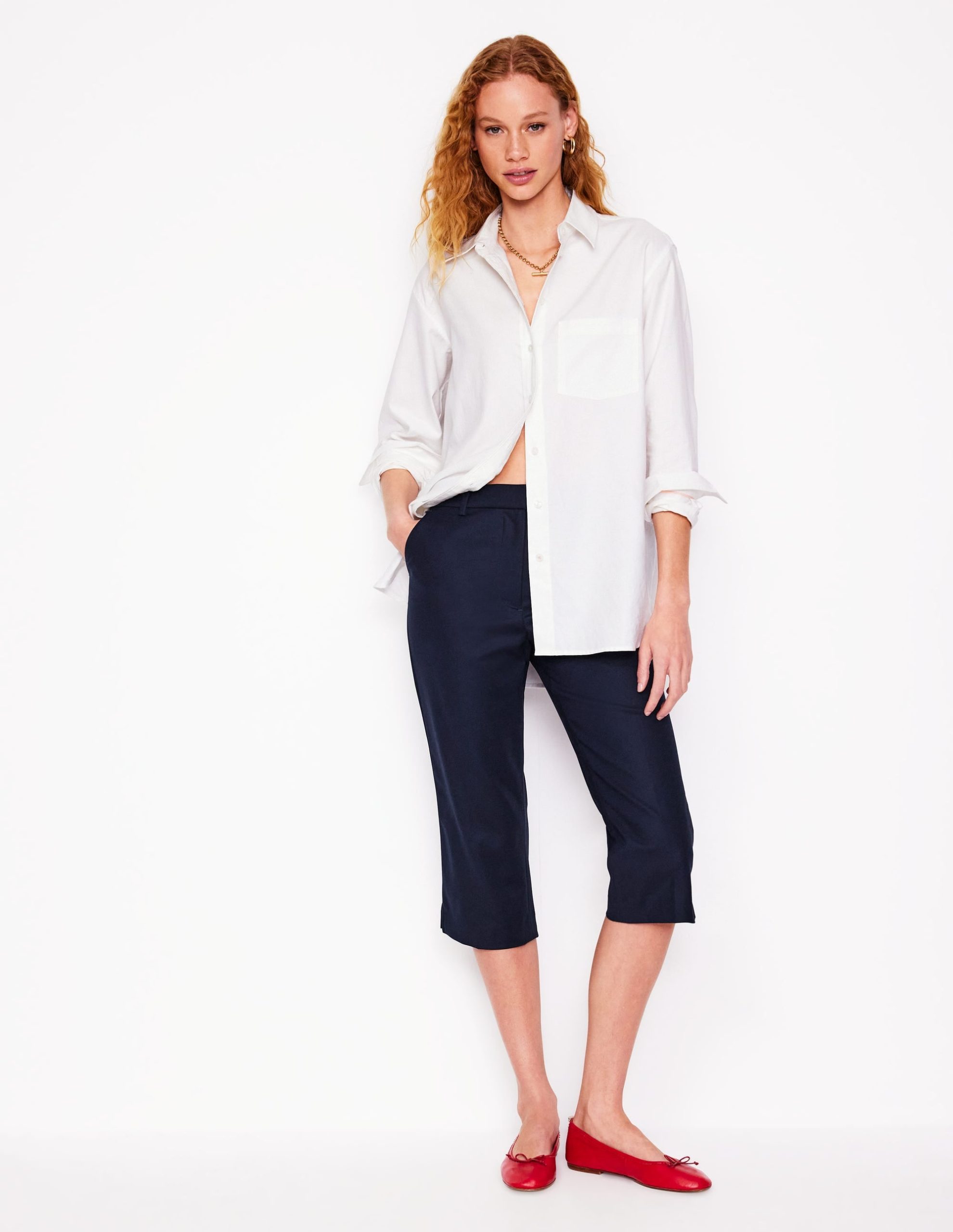 Say hello to holidays in our classic capri trousers. Wear this pair on repeat with colour-pop ballet flats and let yourself run away with the romance of summer.