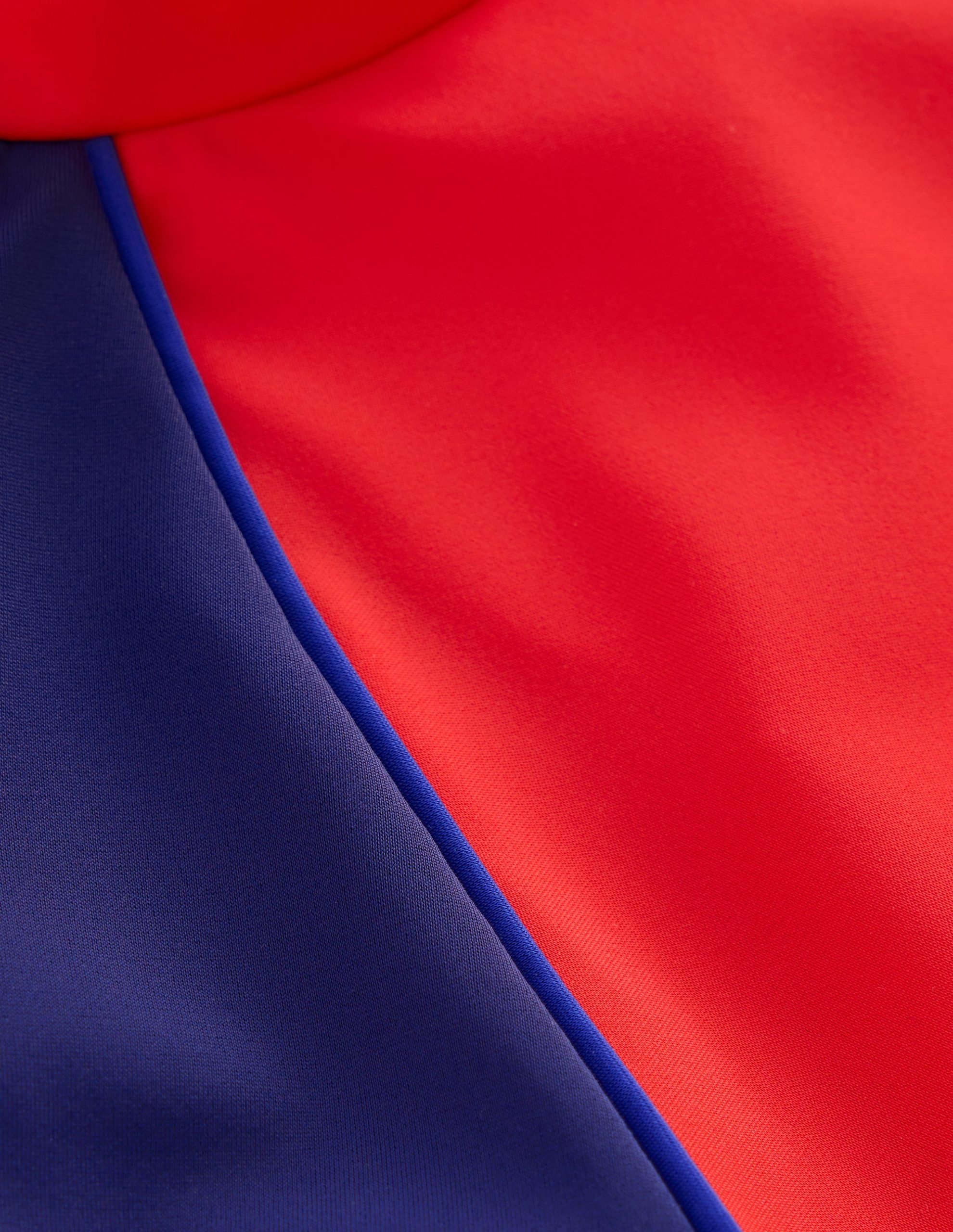 When the surf’s up (or the paddling pool’s full). our long-sleeved rash vest is ready for duty. It’s made from comfortably stretchy fabric and features a high neck for extra coverage. Choose from a selection of bold colours.
