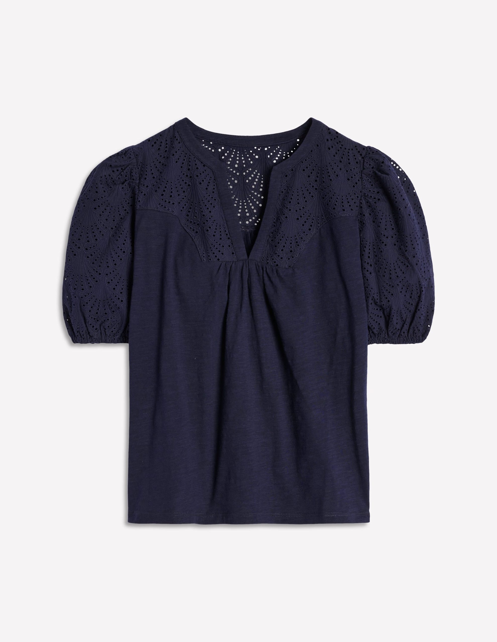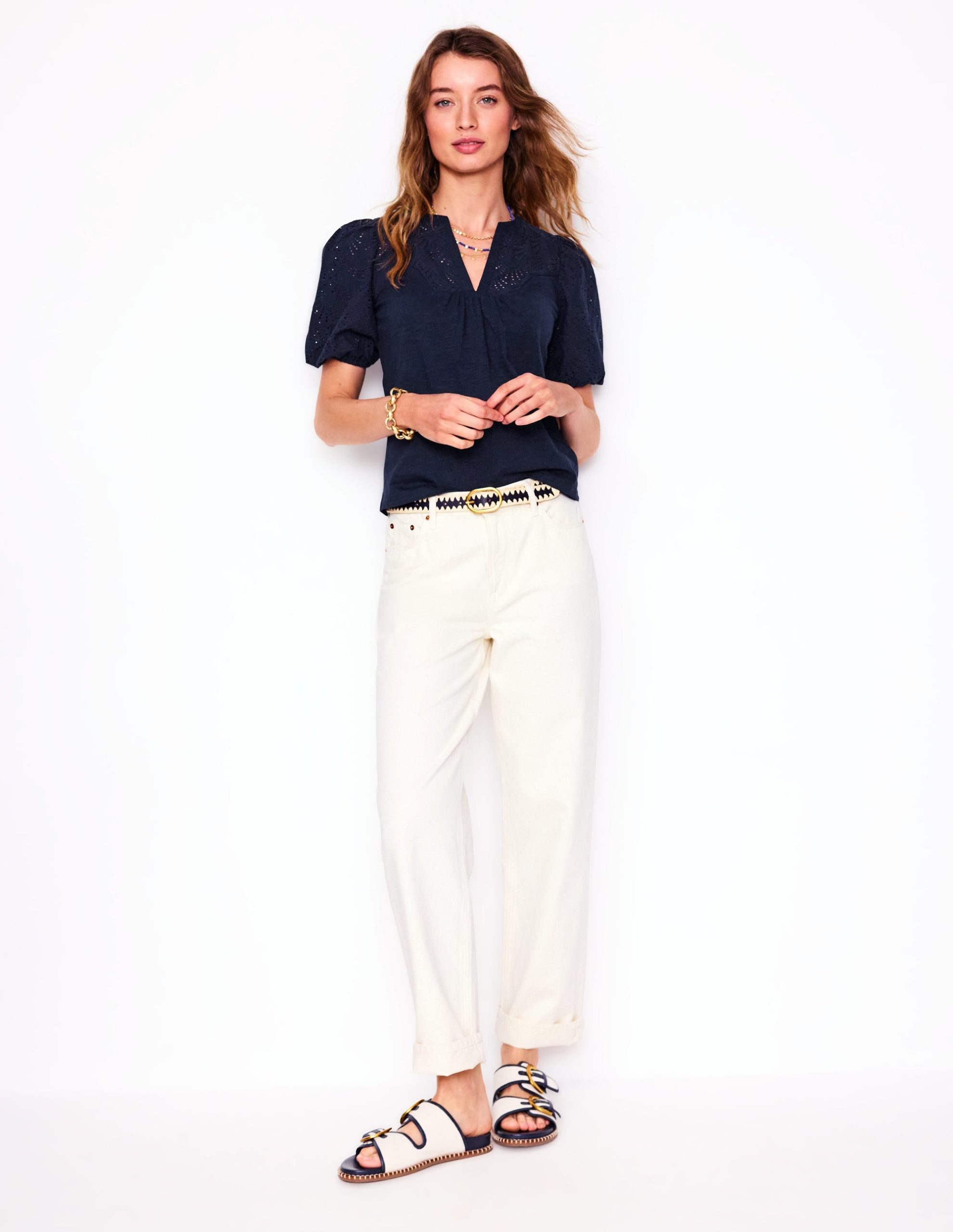 The Dolly will be a delightful asset to your summer wardrobe. The puff sleeves and pretty broderie make it up a notch on our Boden style barometer.