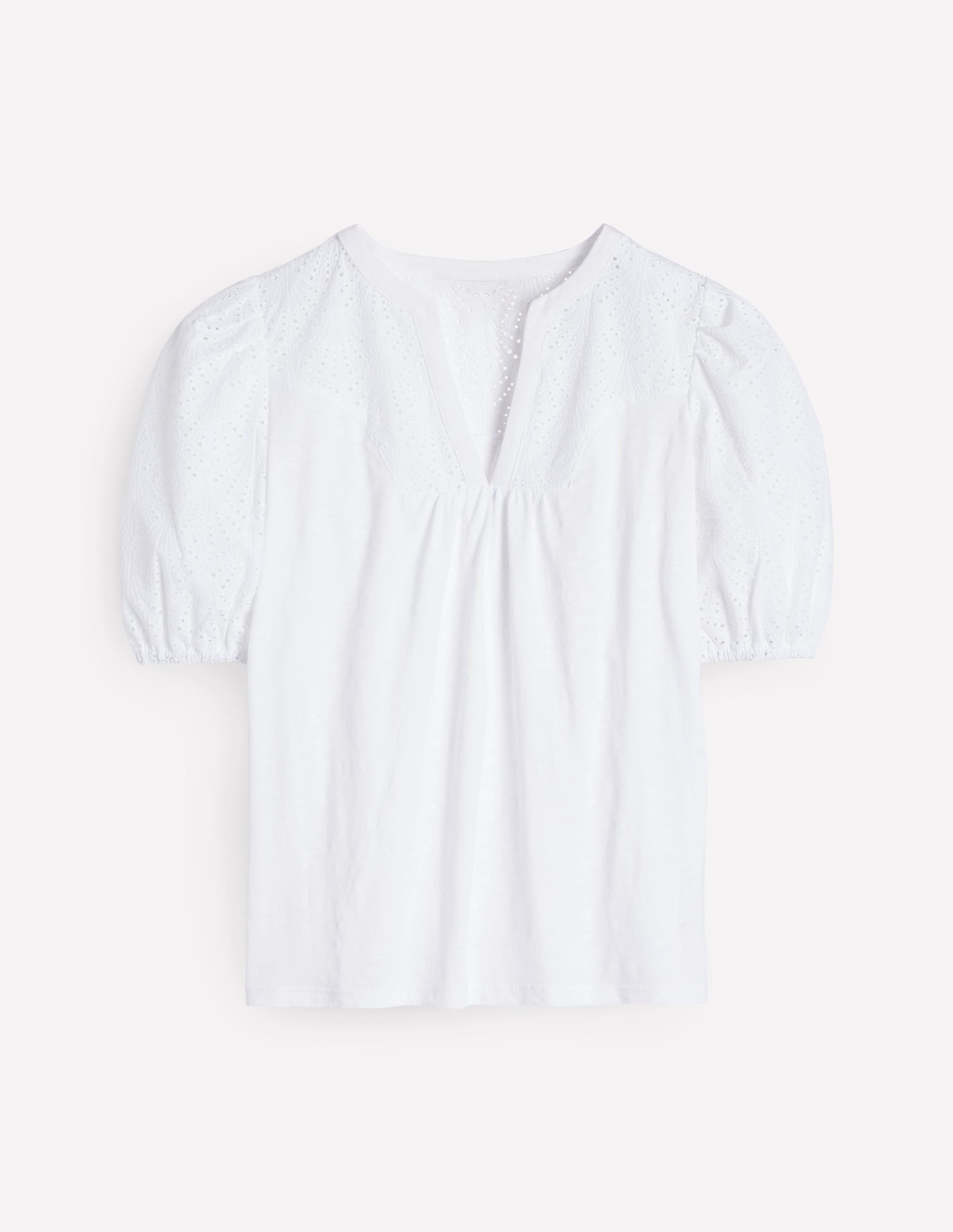 The Dolly will be a delightful asset to your summer wardrobe. The puff sleeves and pretty broderie make it up a notch on our Boden style barometer.