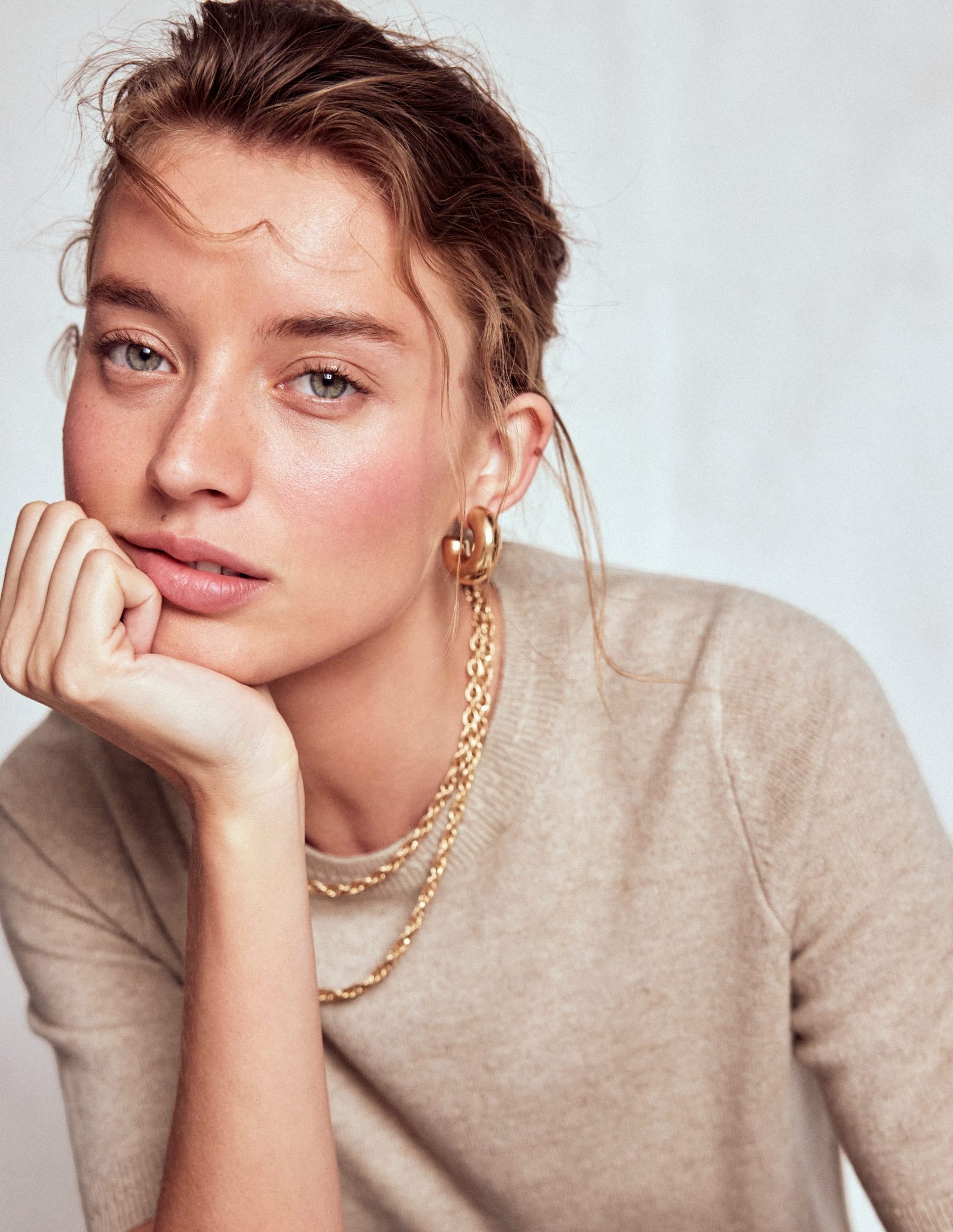 The Eva T-shirt is spun from 100% cashmere and has a loosely fitted shape. Cosy on fading summer evenings when you still want to enjoy a drink al fresco and it works for the office too.