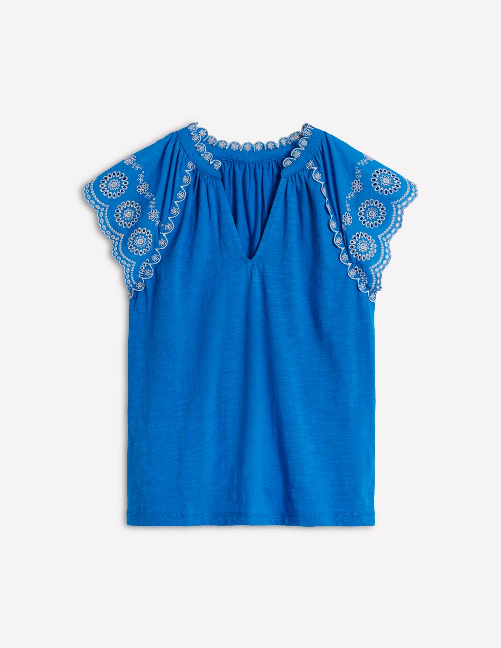 Ila Broderie Sleeve Notch Top-Kingfisher Blue