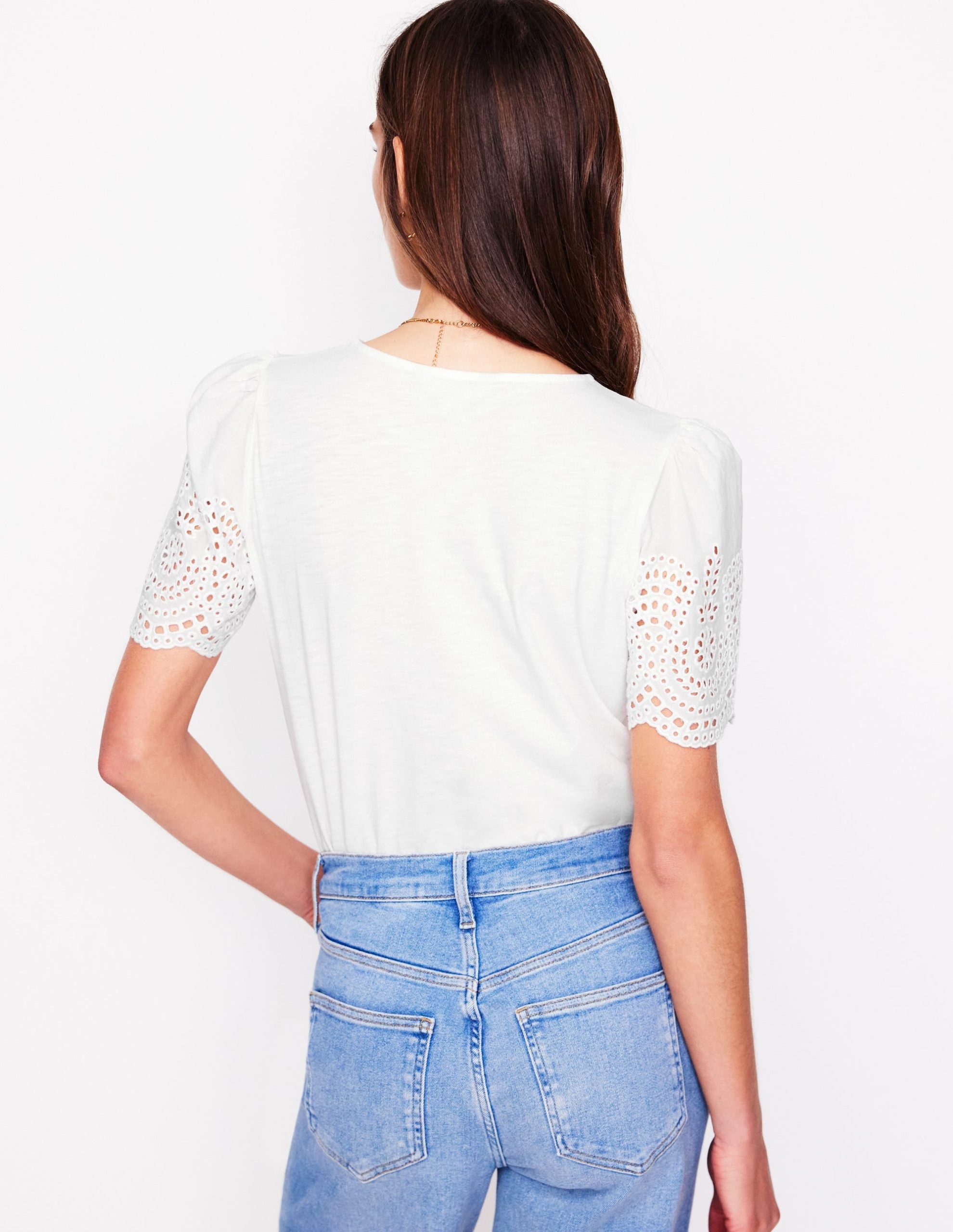 The Isabel top takes the classic T-shirt and adds heaps of extra style points with the pretty broderie detail. Get ready to make sun-filled happy memories.