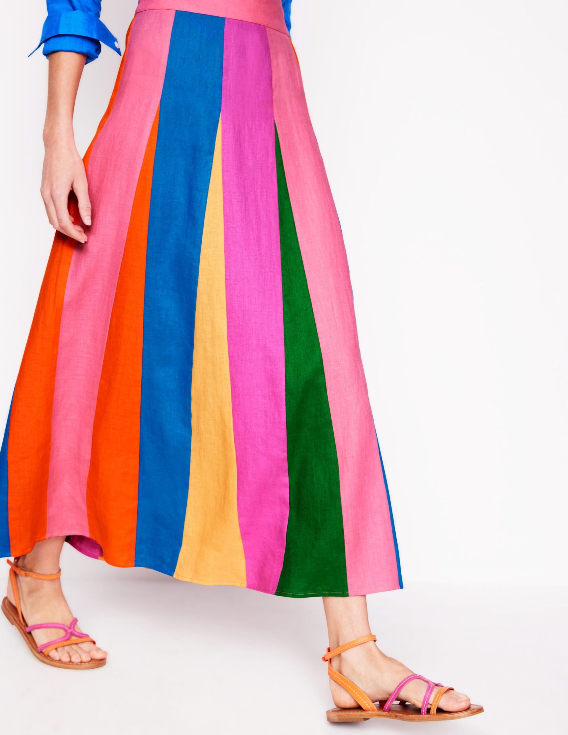 Linen Flippy Maxi Skirt-Multi Colourblock
