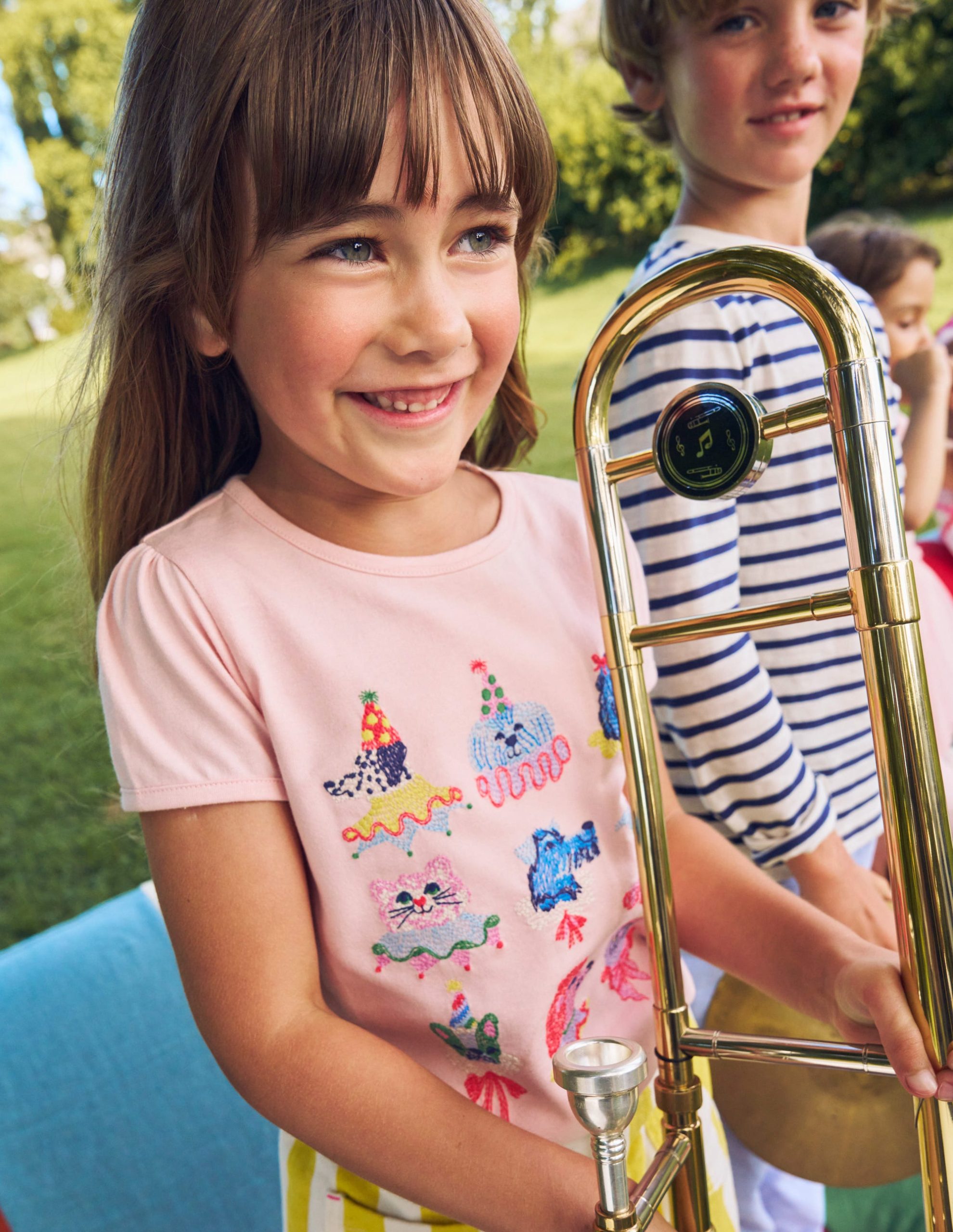 Lots of tiny stitches and puff sleeves make this top extra special. The long sleeves will keep Minis cosy on new-season adventures.