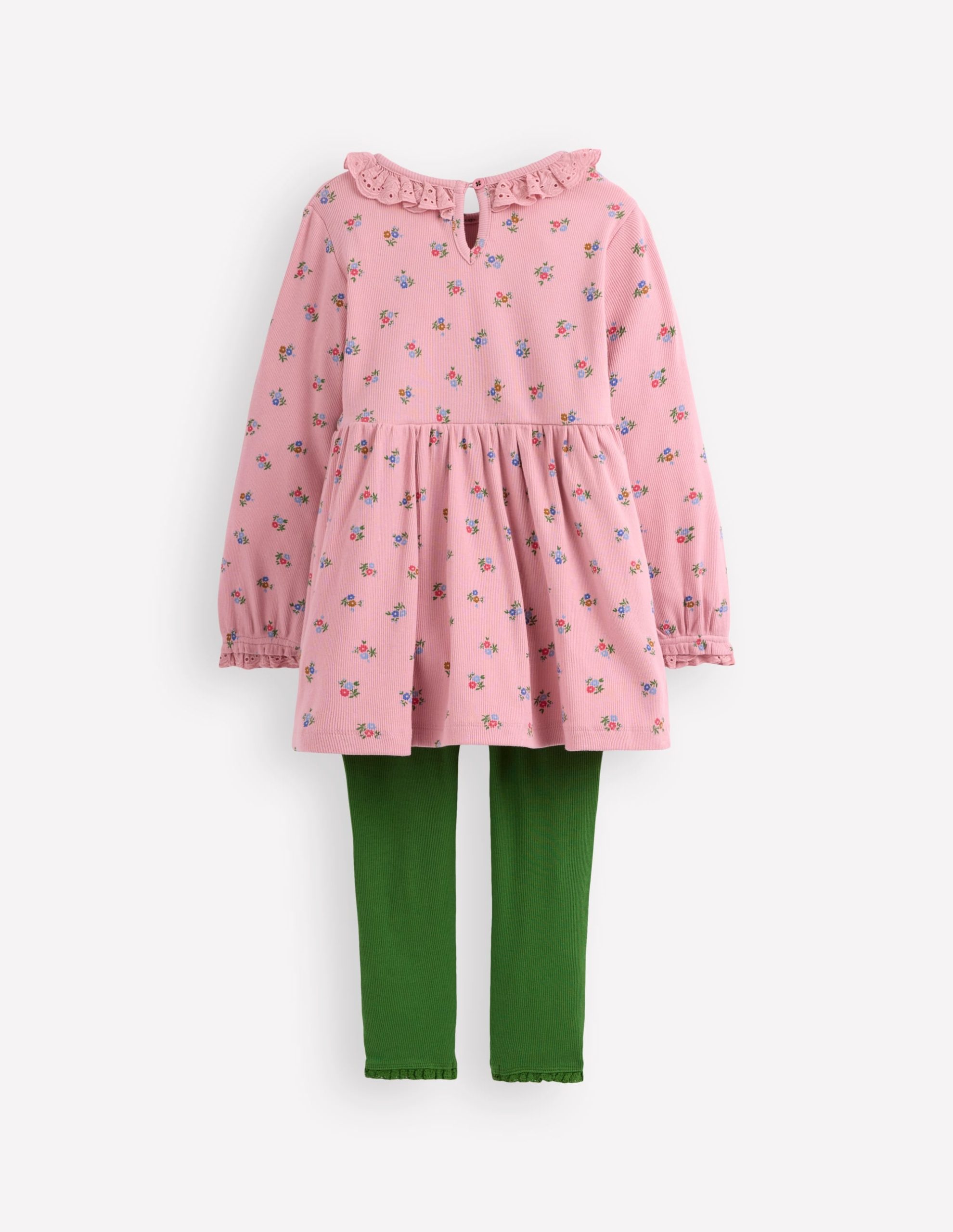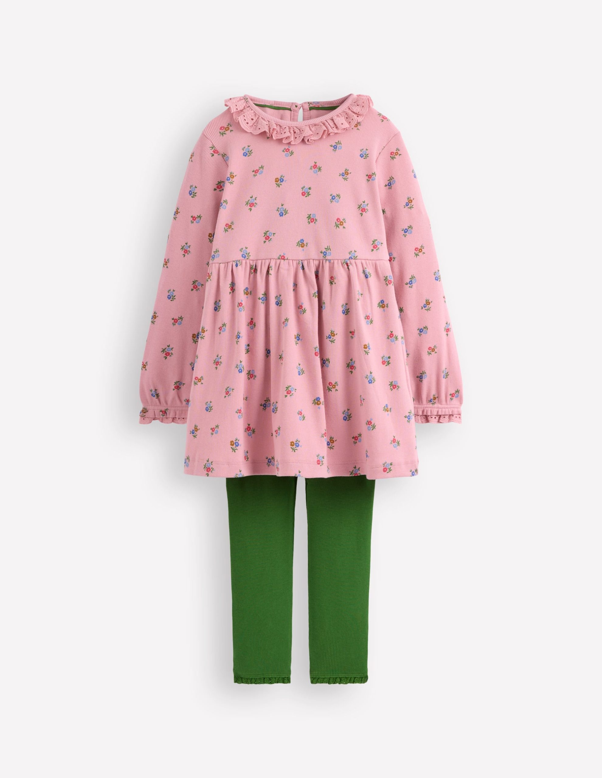 A ready-to-play outfit. hurray! This ribbed (A-line shaped) tunic and colourful leggings are spun from soft cotton with a little stretch and finished with broderie trim. Perfect for Minis on the move.