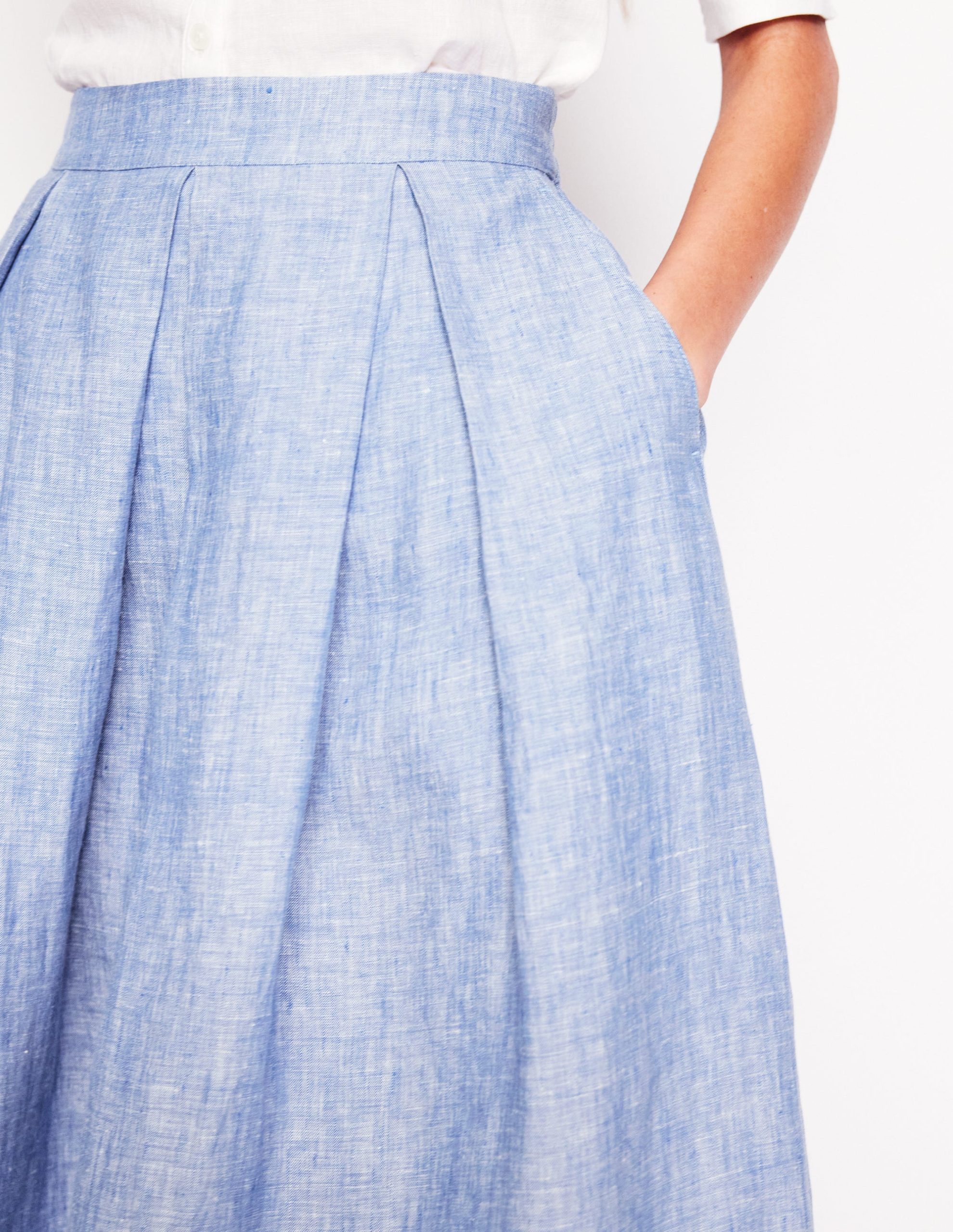 Verity Linen Midi Skirt-Grey Blue Chambray