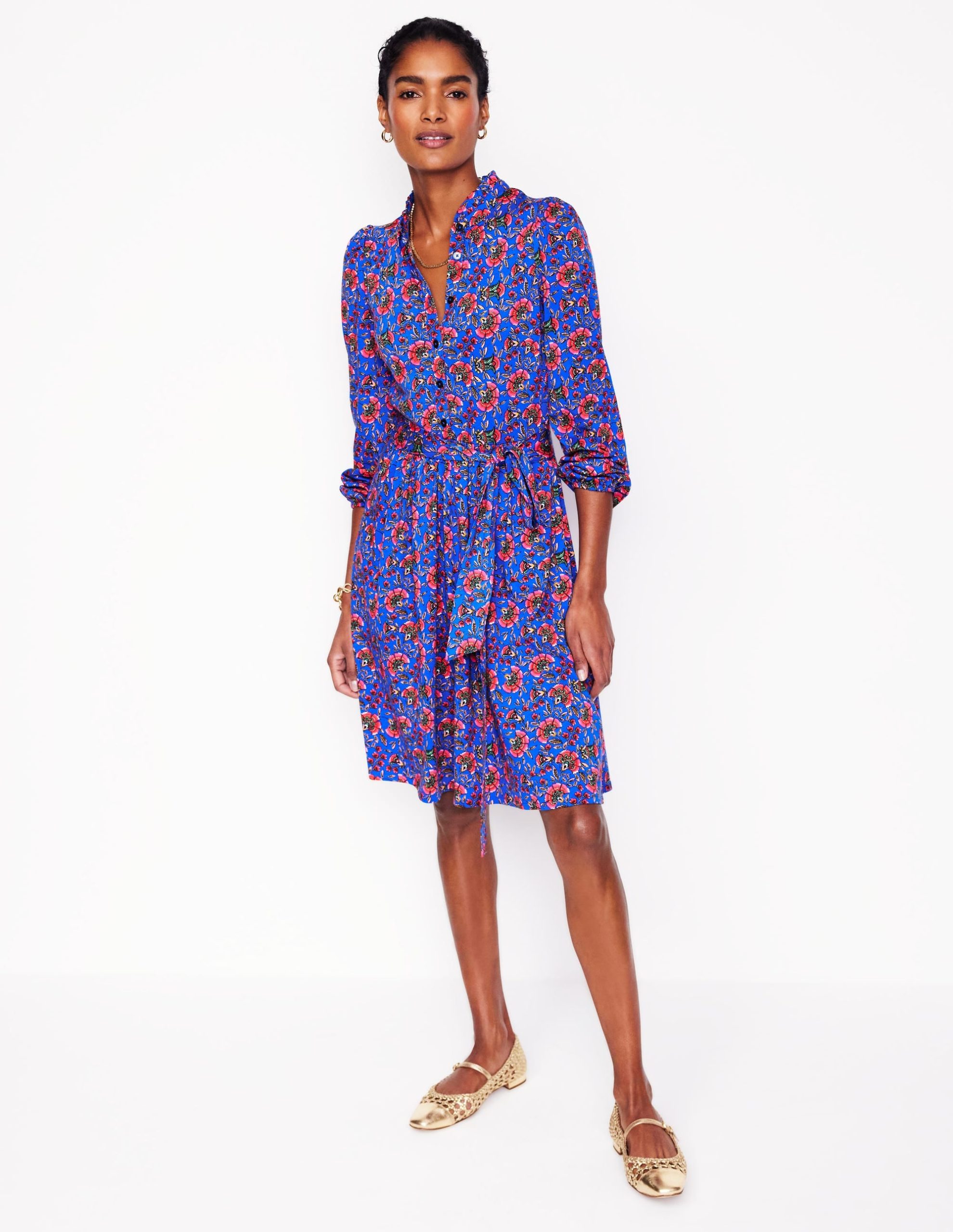 Willow Ruffle Neck Shirt Dress-Gallery Blue. Decorative Vine